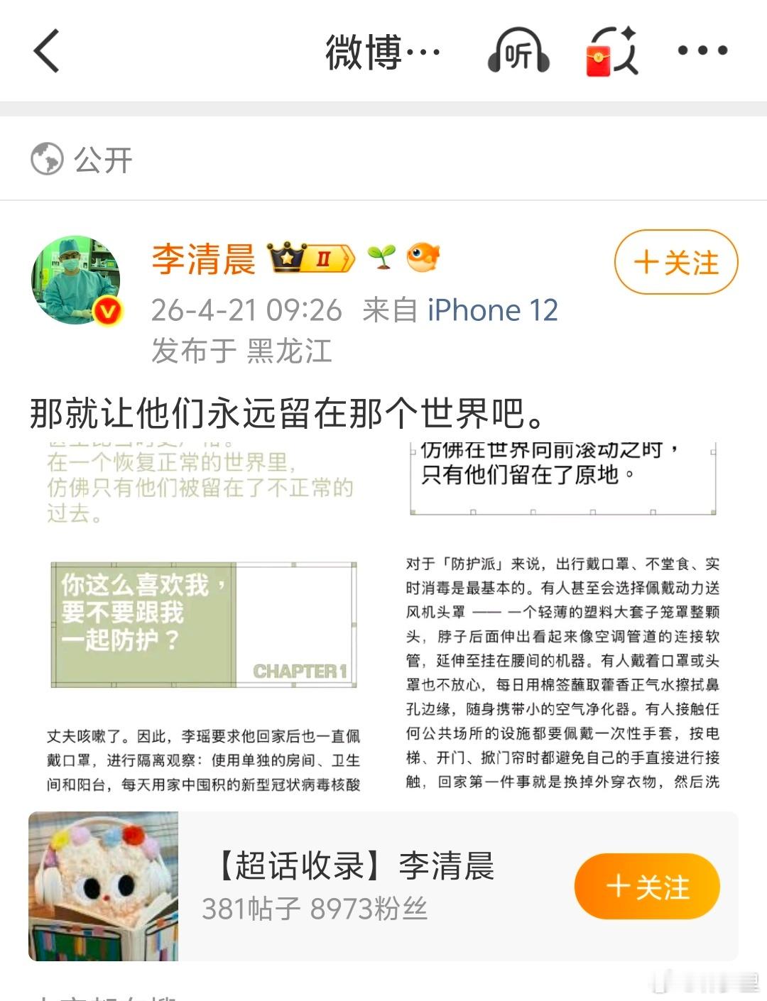 图1这条微博一群躺废在团建,而我去看了一下原文(参考:网页链接),发现这里面的人之所以那么夸张的防护,是因为他们经历了长新冠。