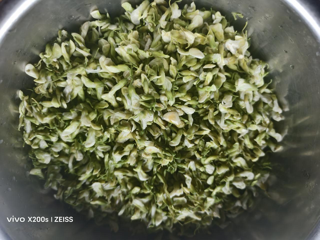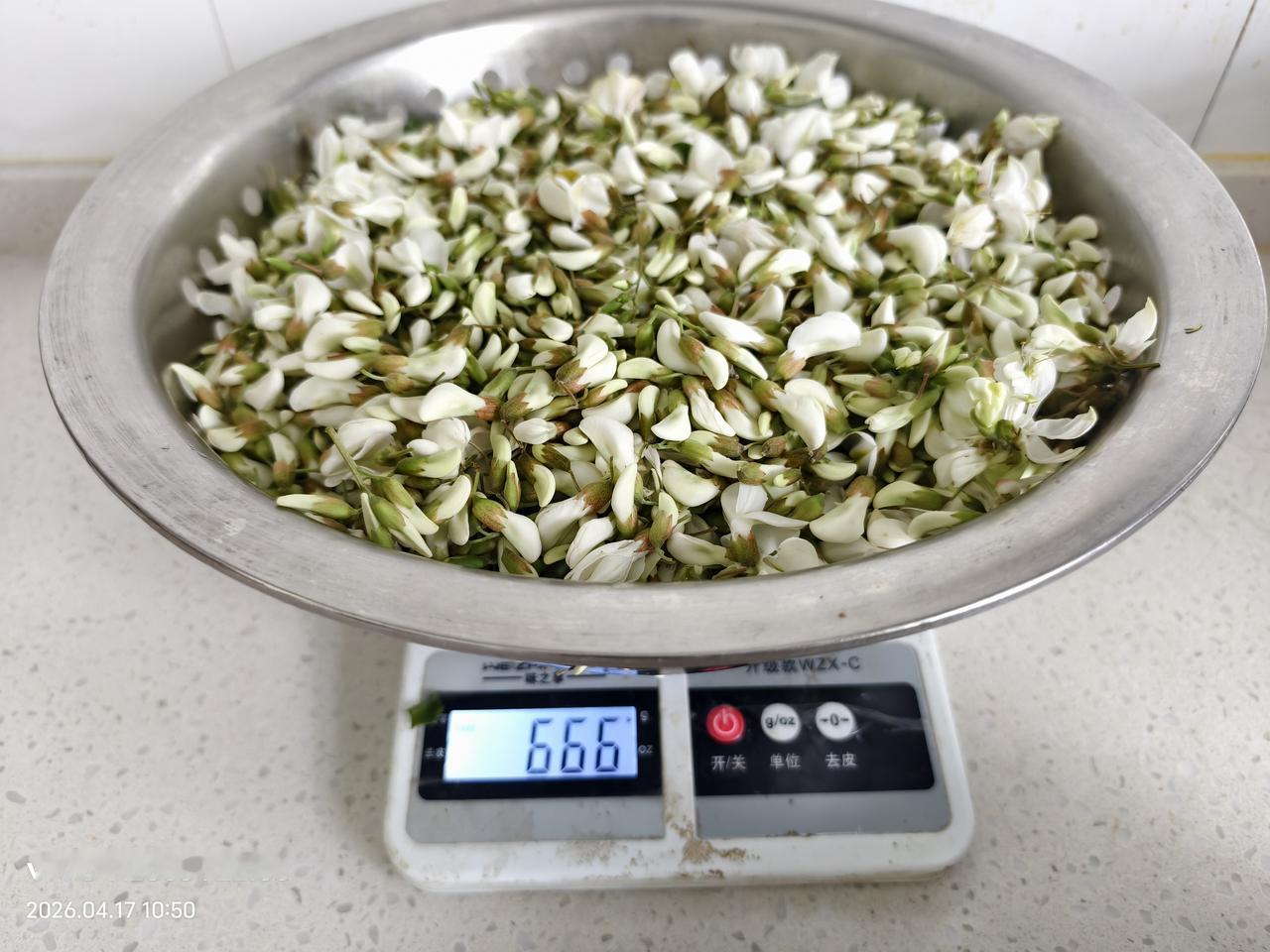 这不我就是在它们盛开期前采摘了一个吉利数——666克含苞待放的槐花。