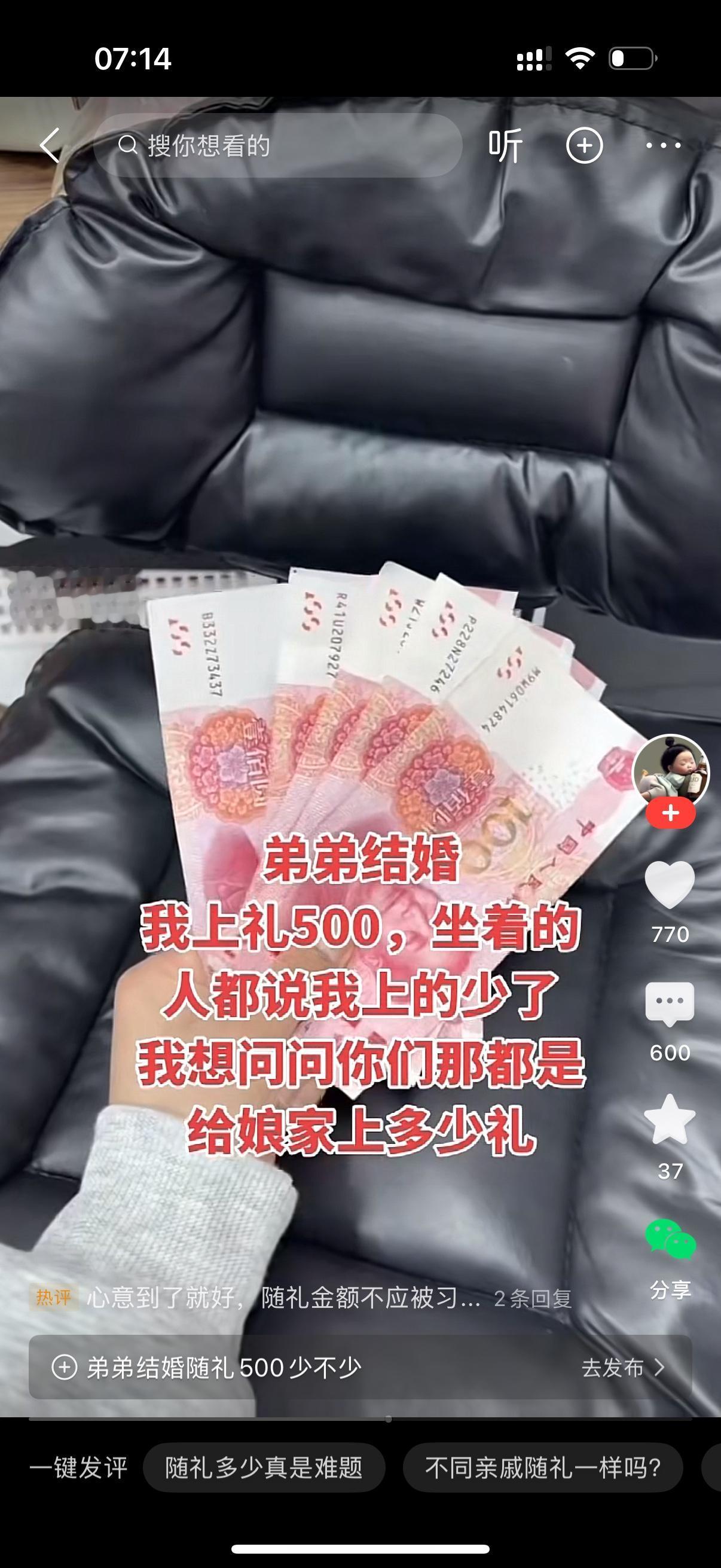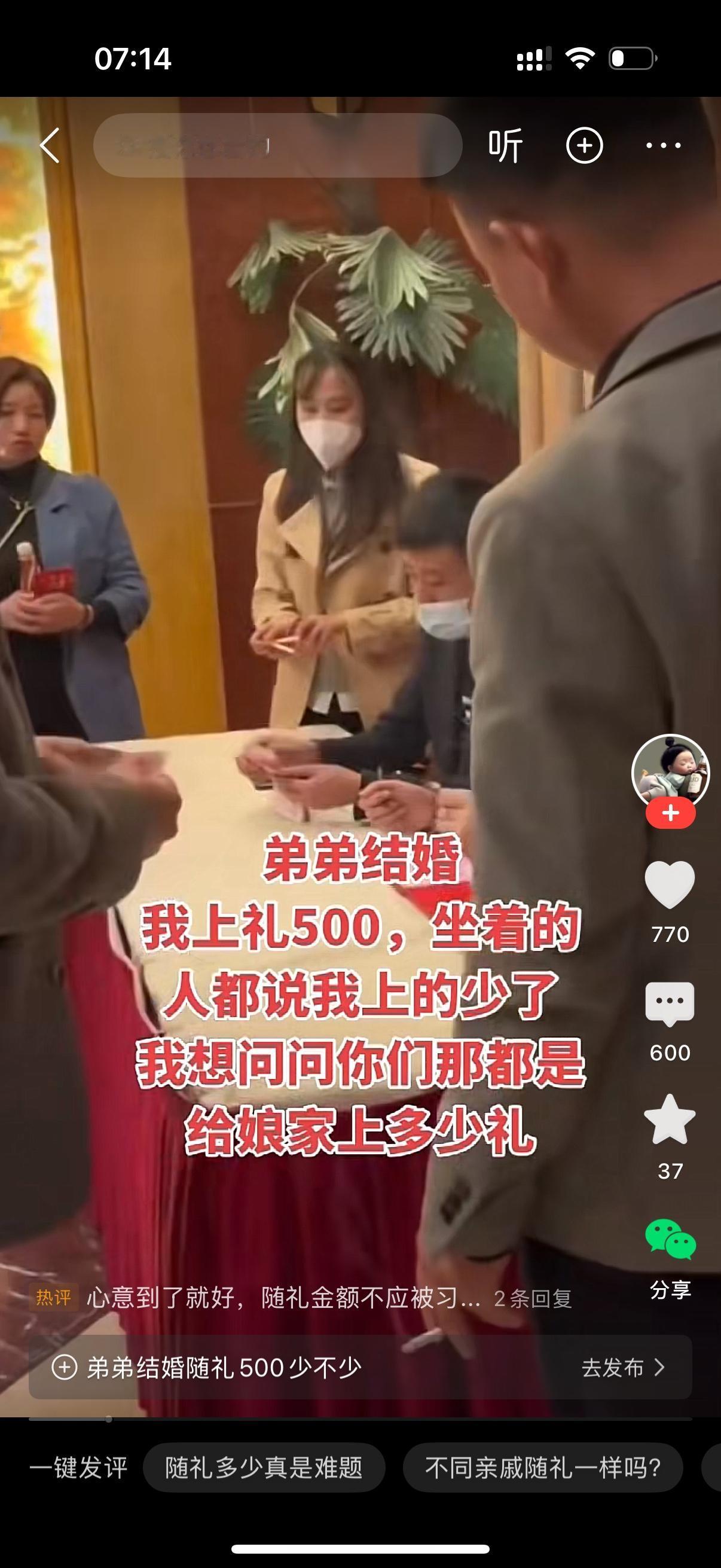 弟弟结婚,姐姐上礼500。旁边坐着的人都说她上少了,姐姐感觉很没面子,她全网发问