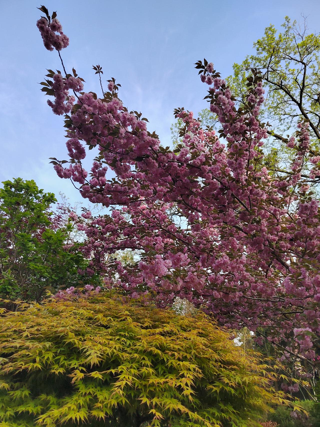 春日盛开的粉色樱花,蓝天白云映衬,美不胜收!🌸🌞