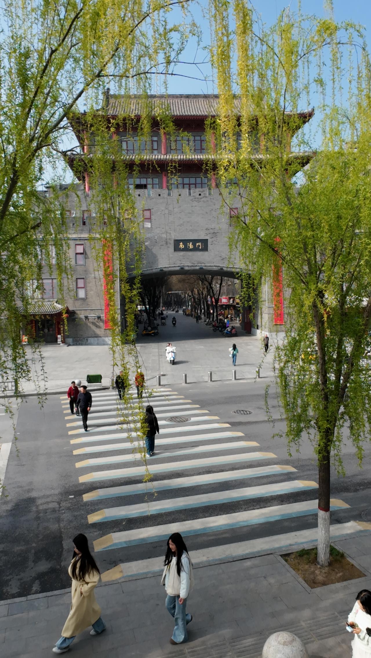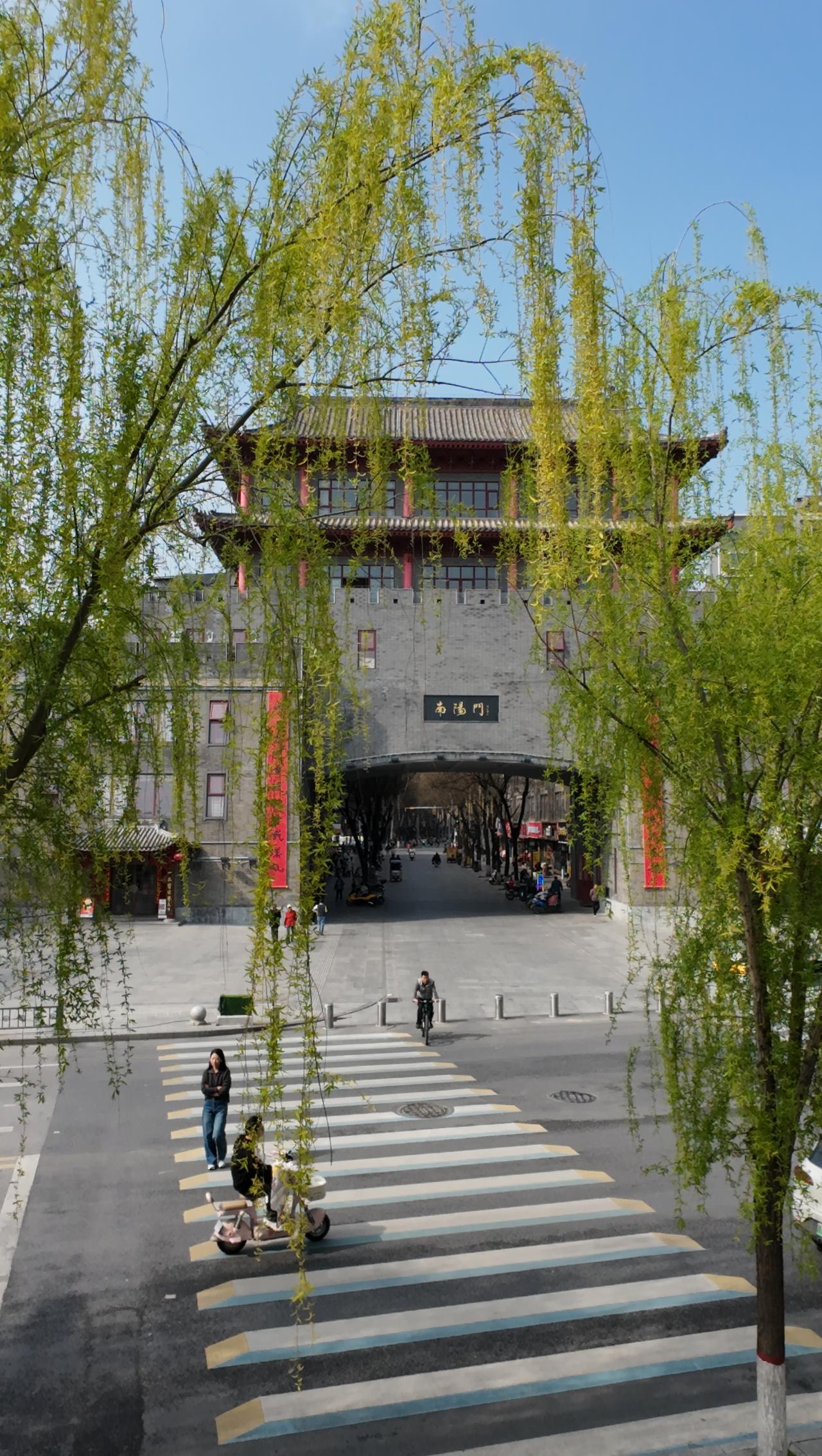 咸阳南阳门,门前是古渡遗址,廊桥跨渭河;进门就是老城美食街!