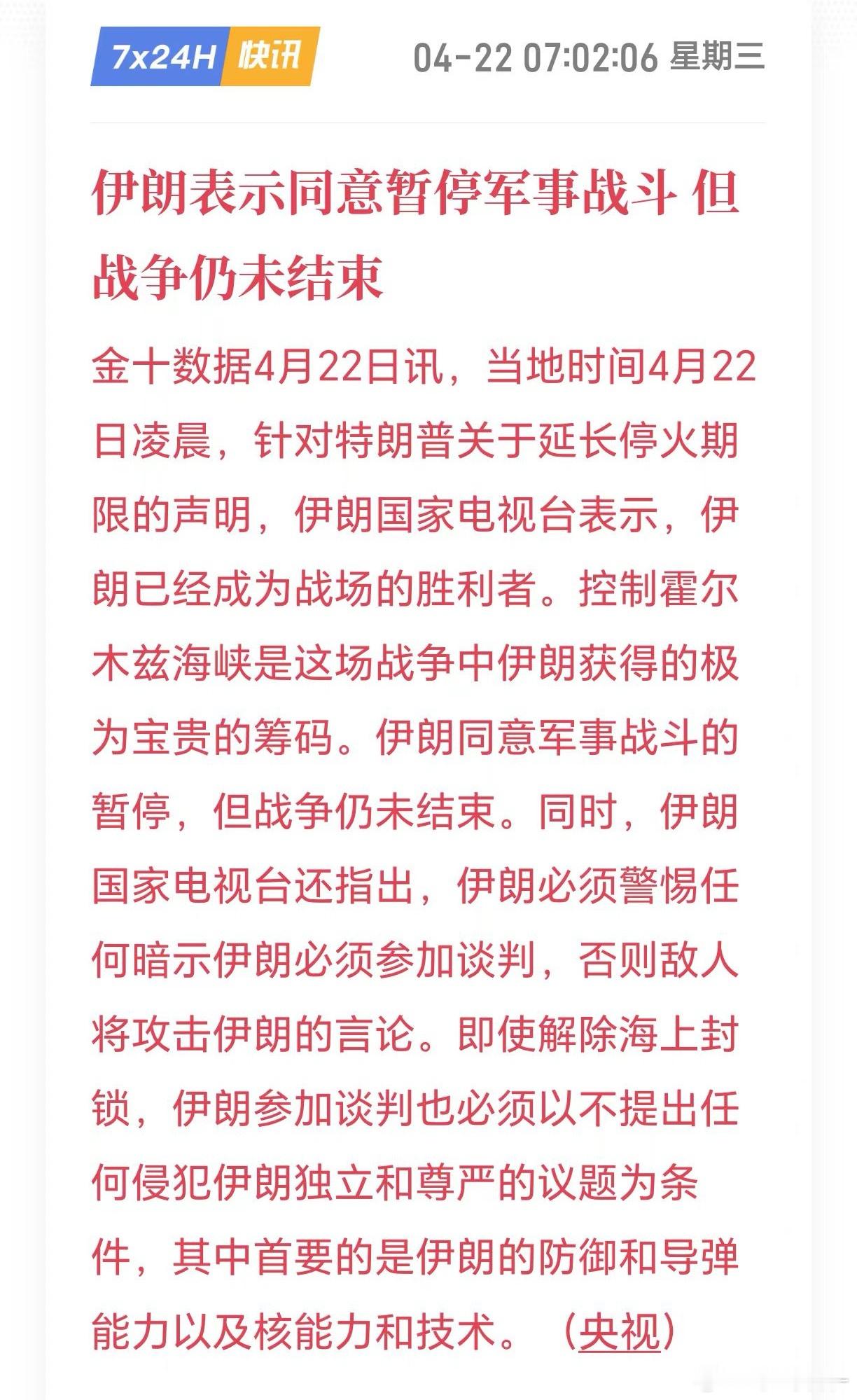 美伊停火延长至伊朗提方案并谈妥