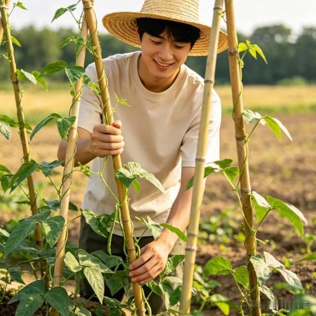 第一个错误:豆角抽蔓后不搭架。藤蔓趴在地上相互缠绕,田间通风透光性极差,花芽没法正常分化,自然很难结荚。等到豆角秧长到30厘米,开始抽蔓时,立马搭好人字架,轻轻牵引藤蔓往上爬,保证通风透光,才能顺利开花坐果。