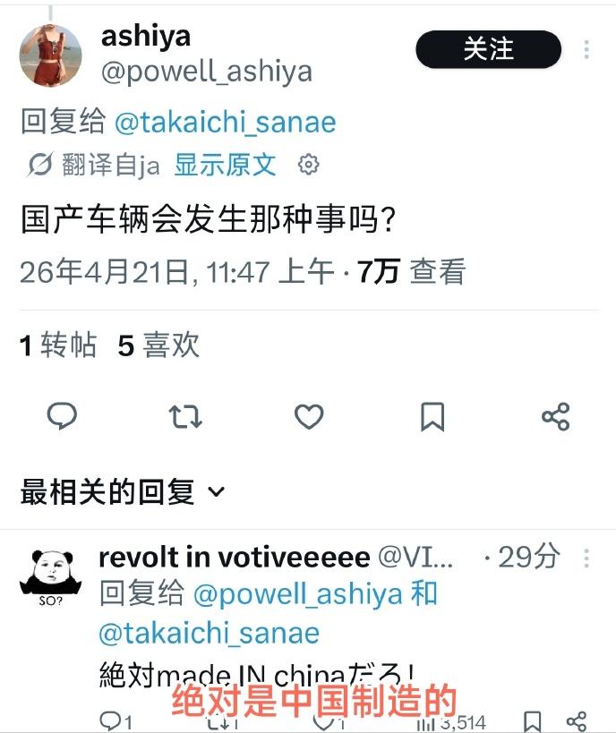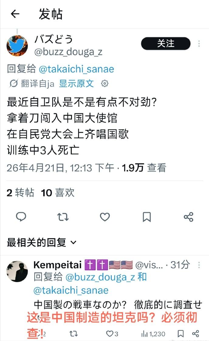更可笑的是日本网友的反应,又上演“阳痿的丈夫”那一出了,自己不行怪伟哥是假药,现在是本子的战车炸膛,评论区开始整整齐齐刷战车是老中产的了。