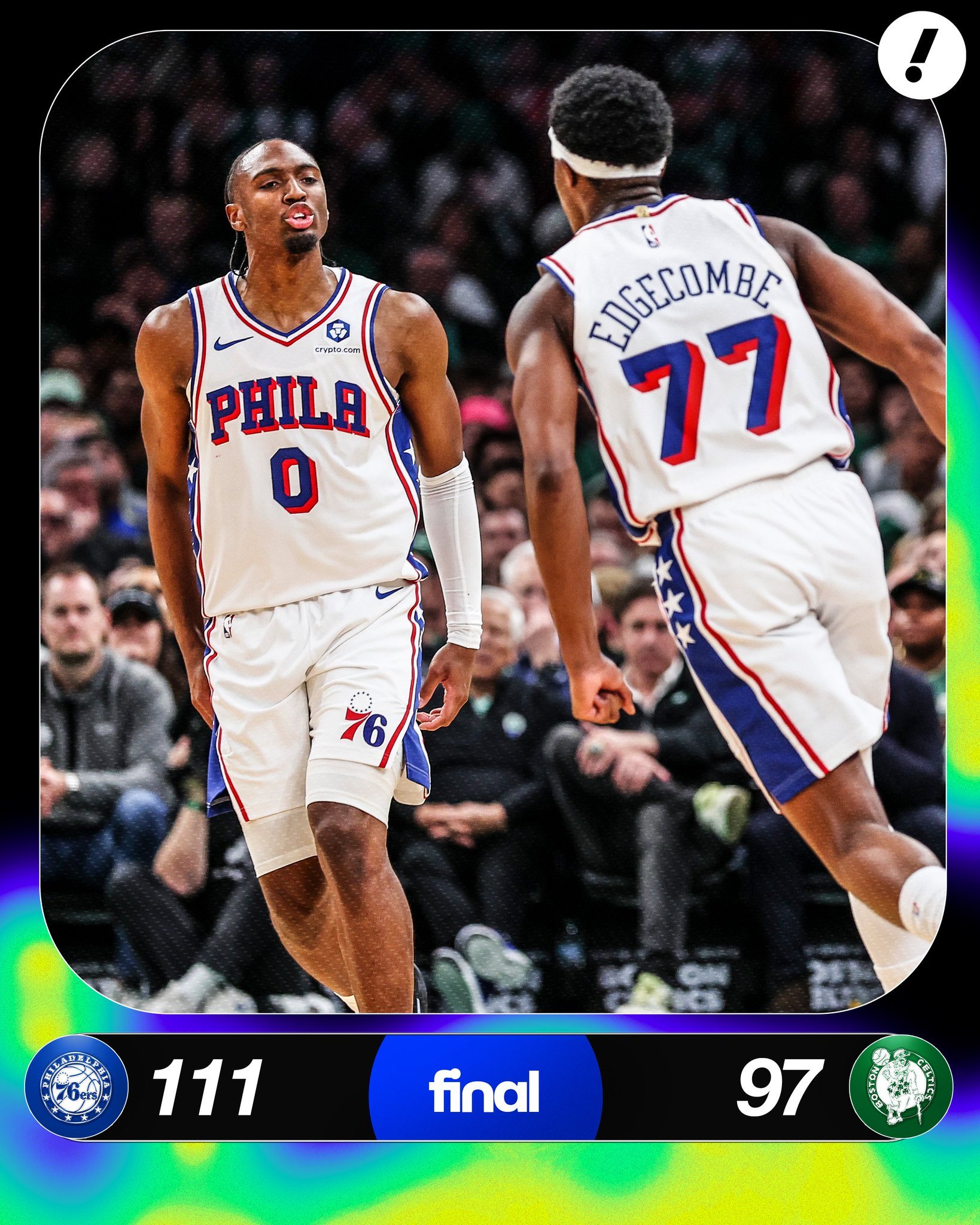 VJ 30分10篮板2助攻2抢断,三分10中6,NBA历史首位30分+10篮板+5三分的新秀!76人vs凯尔特人NBA季后赛