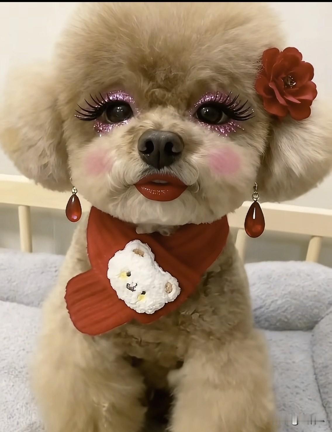 当狗狗化妆后, 是不是惊艳到你了?我们女人也一样,稍微花点时间,就会让自己美得惊艳[赞][赞][赞]