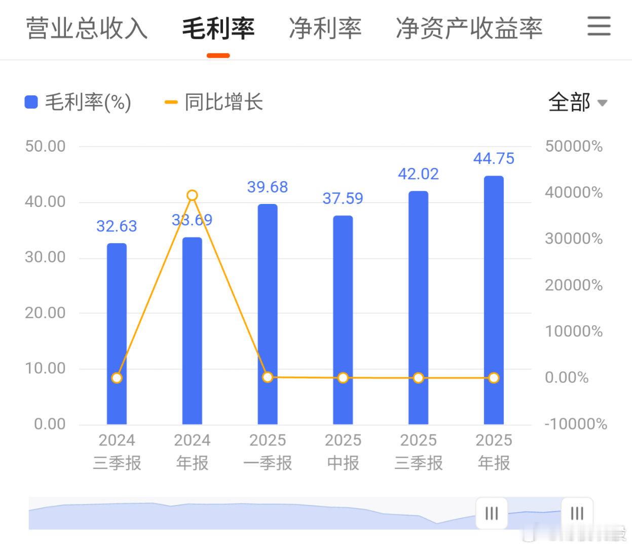 毛利率从24年的34%一路跳涨到45%,利润释放加速,黑底白字。