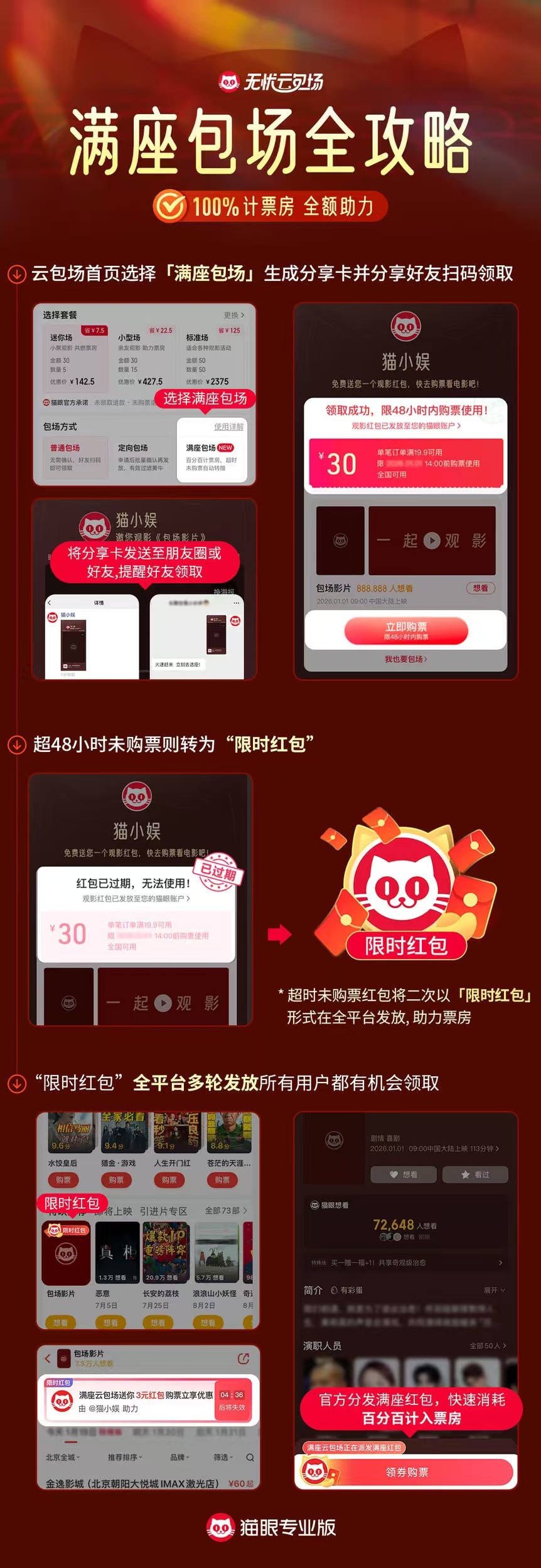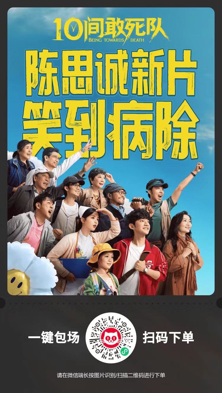 电影10间敢死队预售开启 《10间敢死队》正在火热预售中!管它生活怎么“寻死觅活”的,10号房全员拒绝等待,即刻出发!电影已官宣4月25日-26日北京、长沙、长春、哈尔滨、济南、青岛、沈阳、石家庄、深圳、天津、武汉、西安12城限时点映,将于5月1日全国上映。据猫眼专业版数据,该电影猫眼想看已超1.8万人。工作日余额不足,假期首选喜剧近在眼前,即刻购票锁定能量加满的治愈力,五一影院见!🔽《10间敢死队》云包场攻略🔽轻松下单❤️一键搞定未领未购🧧无忧退款请客看电影🎬就用猫眼云包场~猫眼云包场