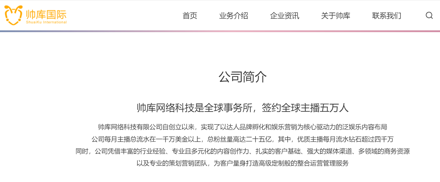 官网信息显示,帅库网络科技全球签约主播5万人,公司每月主播总流水在一千万美金以上(折合人民币超6000万),总粉丝量高达25亿。女孩为何宁愿坐牢也不配合追回打赏