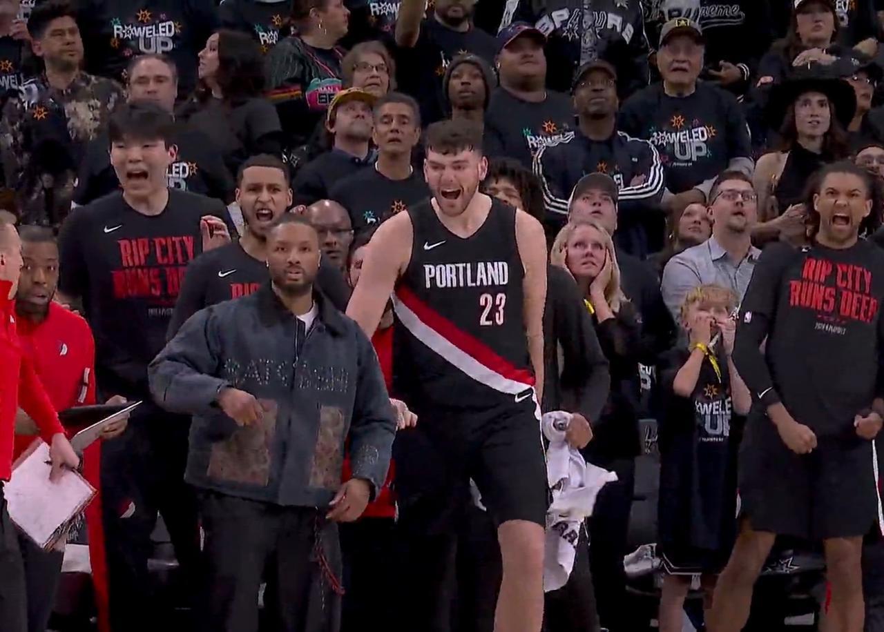 罗威最被开拓者信任,杨瀚森和克林根在场下挥毛巾加油! 虽然克林根是球队首发中锋