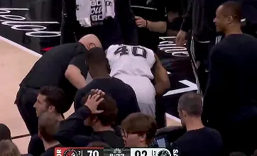 NBA季后赛,马刺对阵开拓者的比赛 第四节比赛,巴恩斯防守中意外扭伤手腕,随后