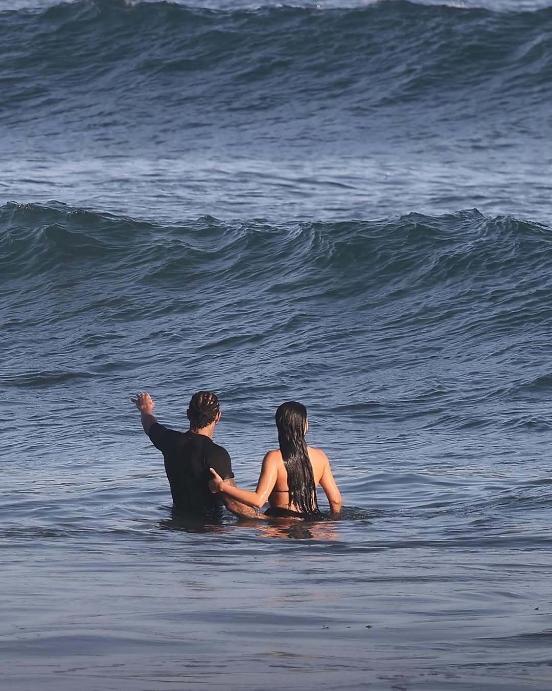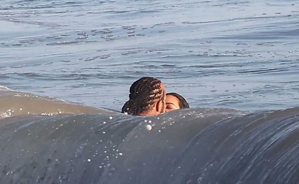 金卡戴珊汉密尔顿海里亲吻 热恋中的金·卡戴珊与刘易斯·汉密尔顿在加州马里布海滩度假,两人在海浪中甜蜜热吻,甜度爆表!