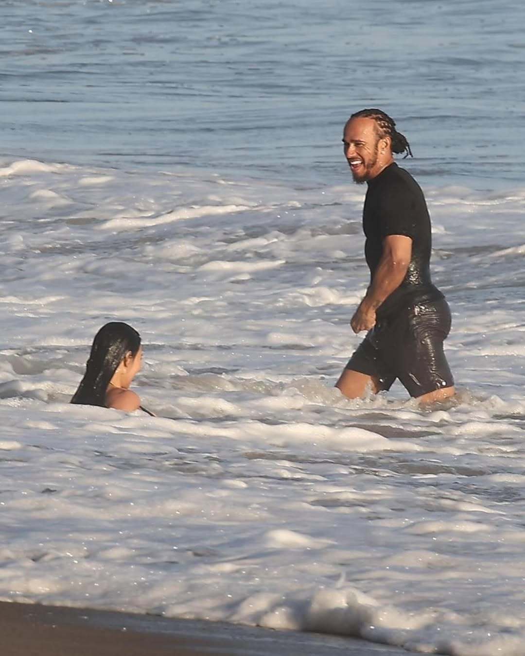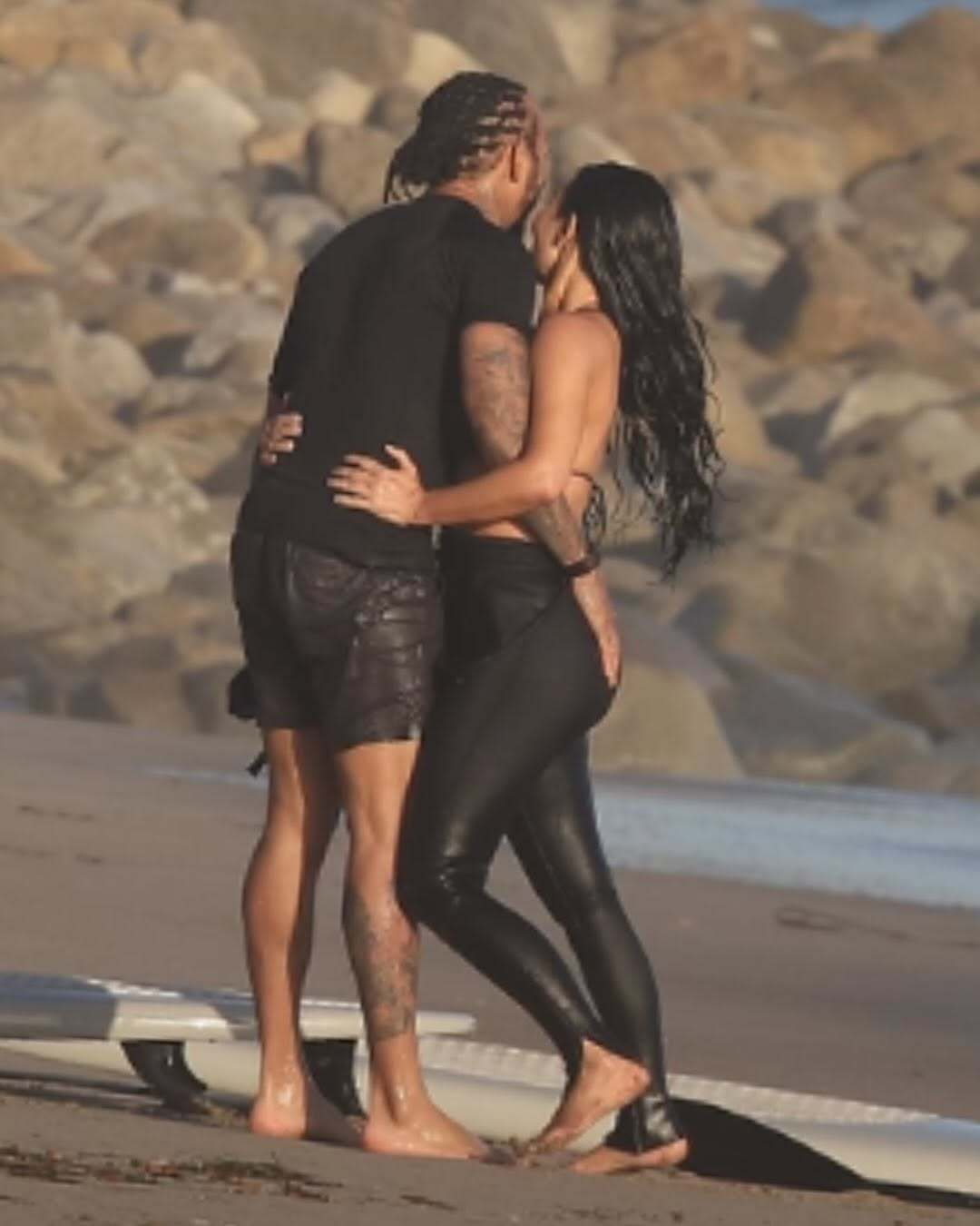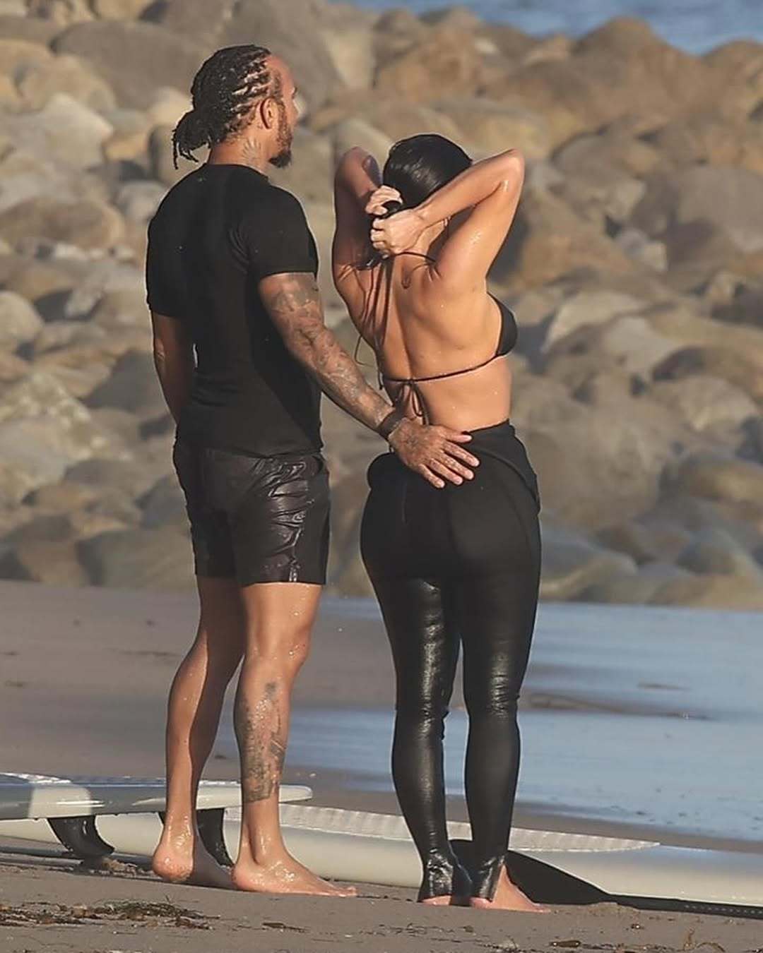 金卡戴珊汉密尔顿海里亲吻 热恋中的金·卡戴珊与刘易斯·汉密尔顿在加州马里布海滩度