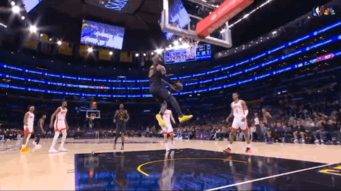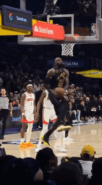 詹姆斯抢出身位要球,过掉杜兰特,单刀突破,折叠背扣,这球搁常规赛也是十佳球啊!(就是高度差了点儿[捂脸])