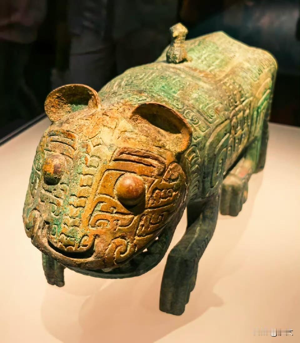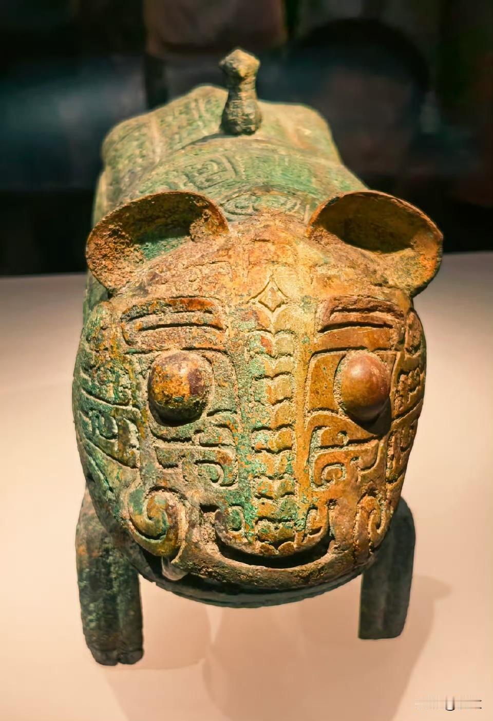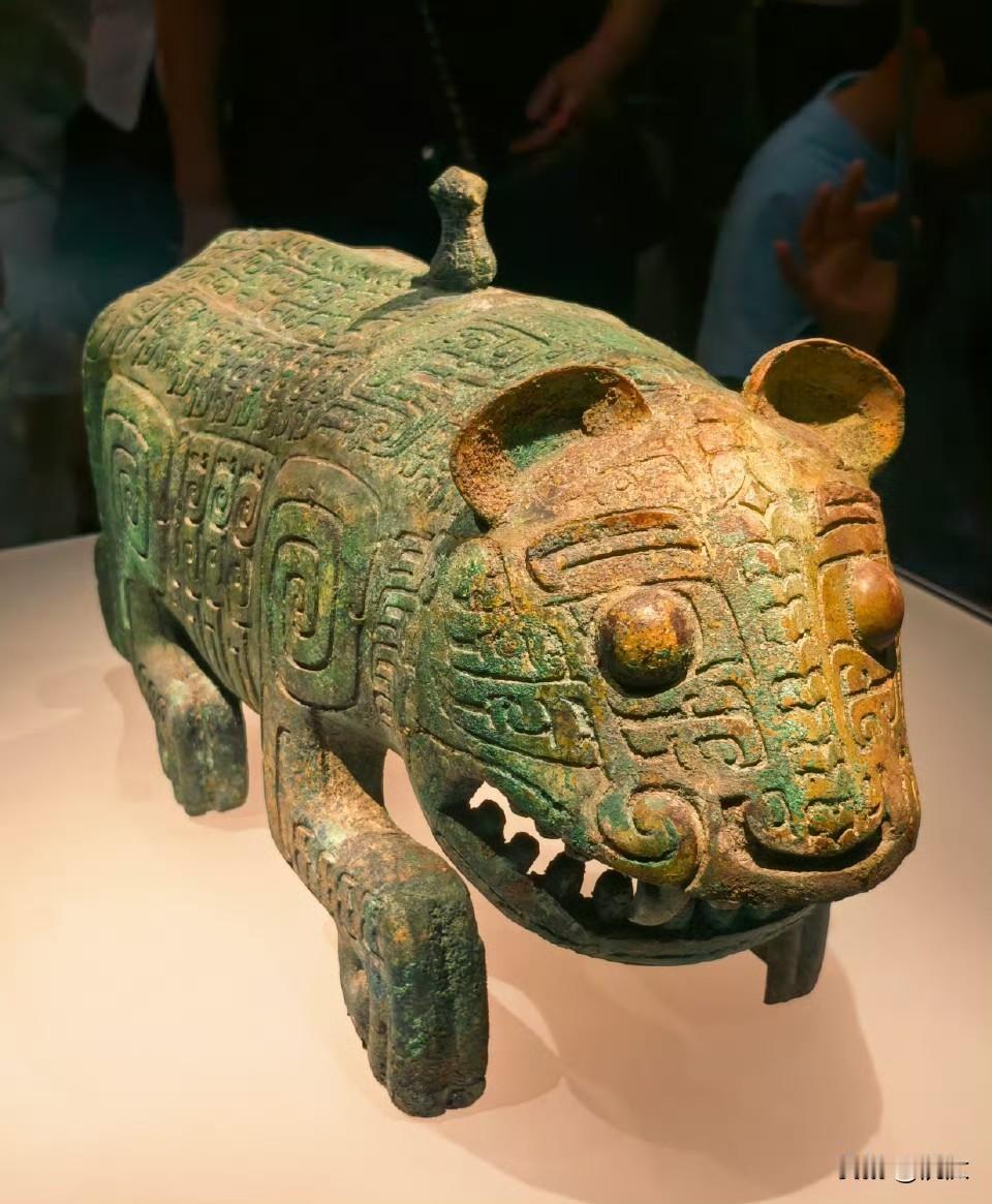 这是一只双尾虎,特别和谐平衡。也是新干大洋洲出土的,是这个殷商时期遗址的标志性青铜器。