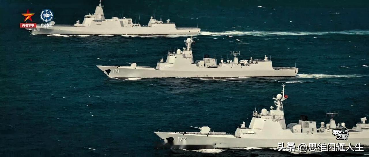 虽说画面里只是4艘军舰,但是经不住这是万吨大驱055带着一艘052C和2艘052D啊。