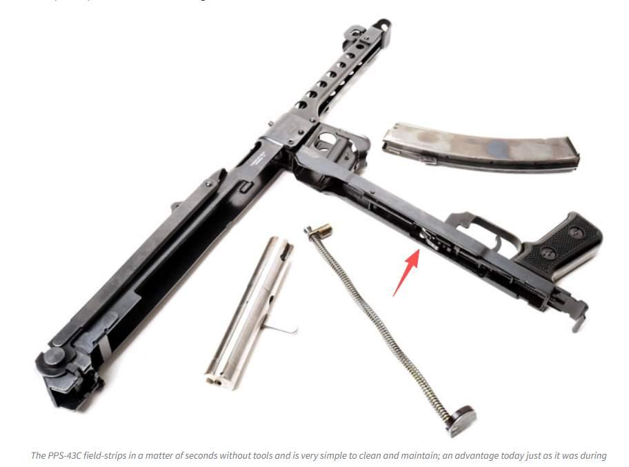 轻兵器科普轻兵器爱好者美国版的“波波斯”,多了一块,感觉更难看了……这个版本称为PPS-43C,面向民间市场销售。它外观上最大的特点是机匣不是一体,而是在弹匣前方分为两截,看起来枪身中间多出一个大方块。内部也有变化,苏达耶夫的原设计采用固定击针,而新设计采用活动式的,只能半自动射击。
