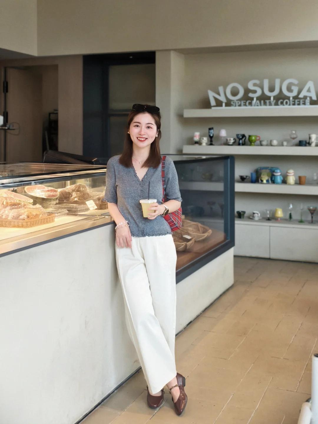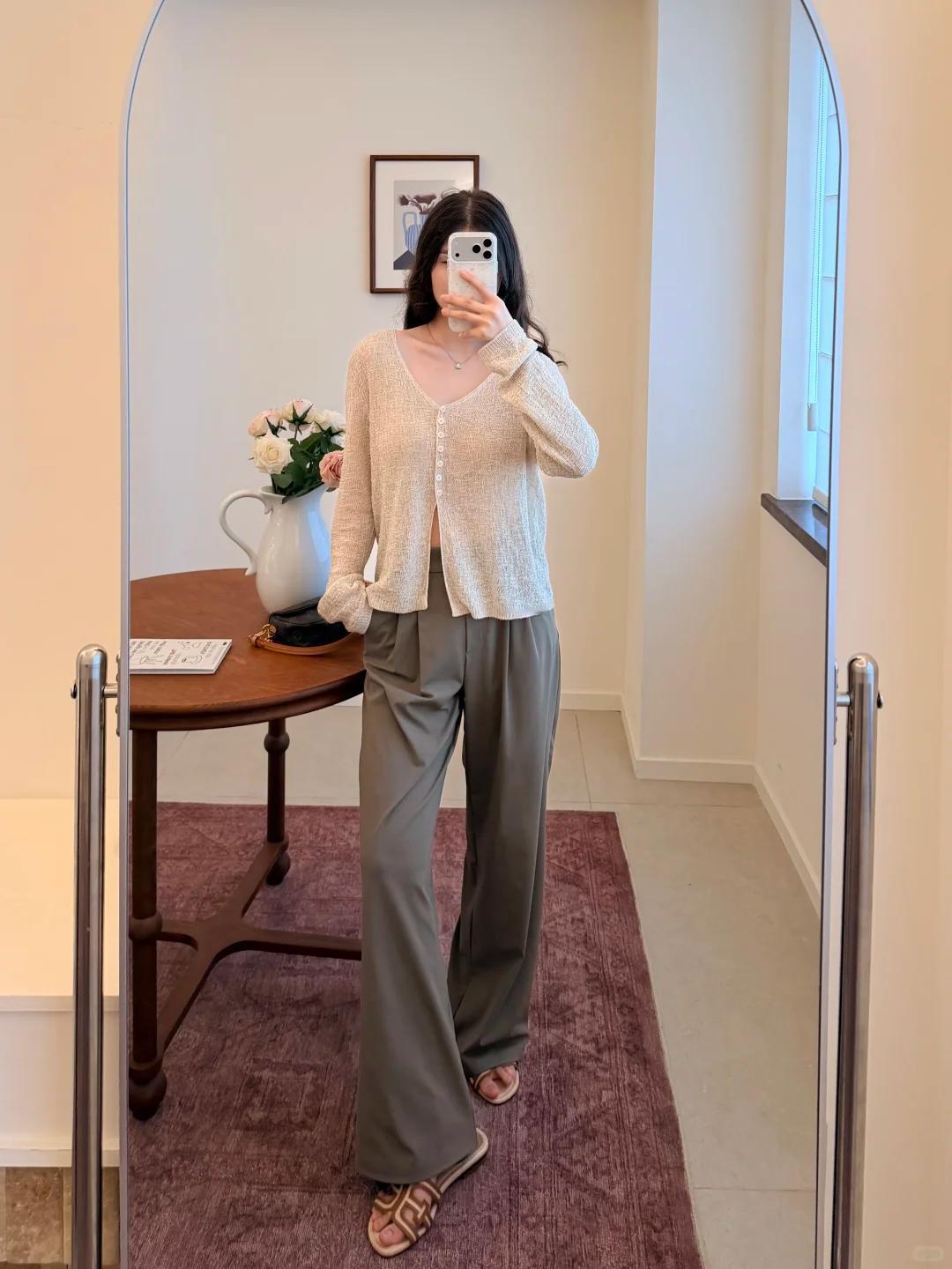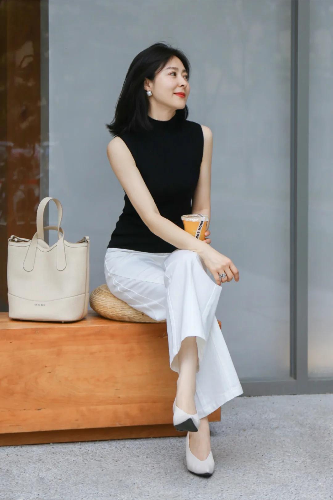 九分西裤:最显高的款!露出脚踝刚好适配初夏,利落不压个子,搭配简单的白衬衫、针织短袖,通勤约会都能打,温柔又干练。
