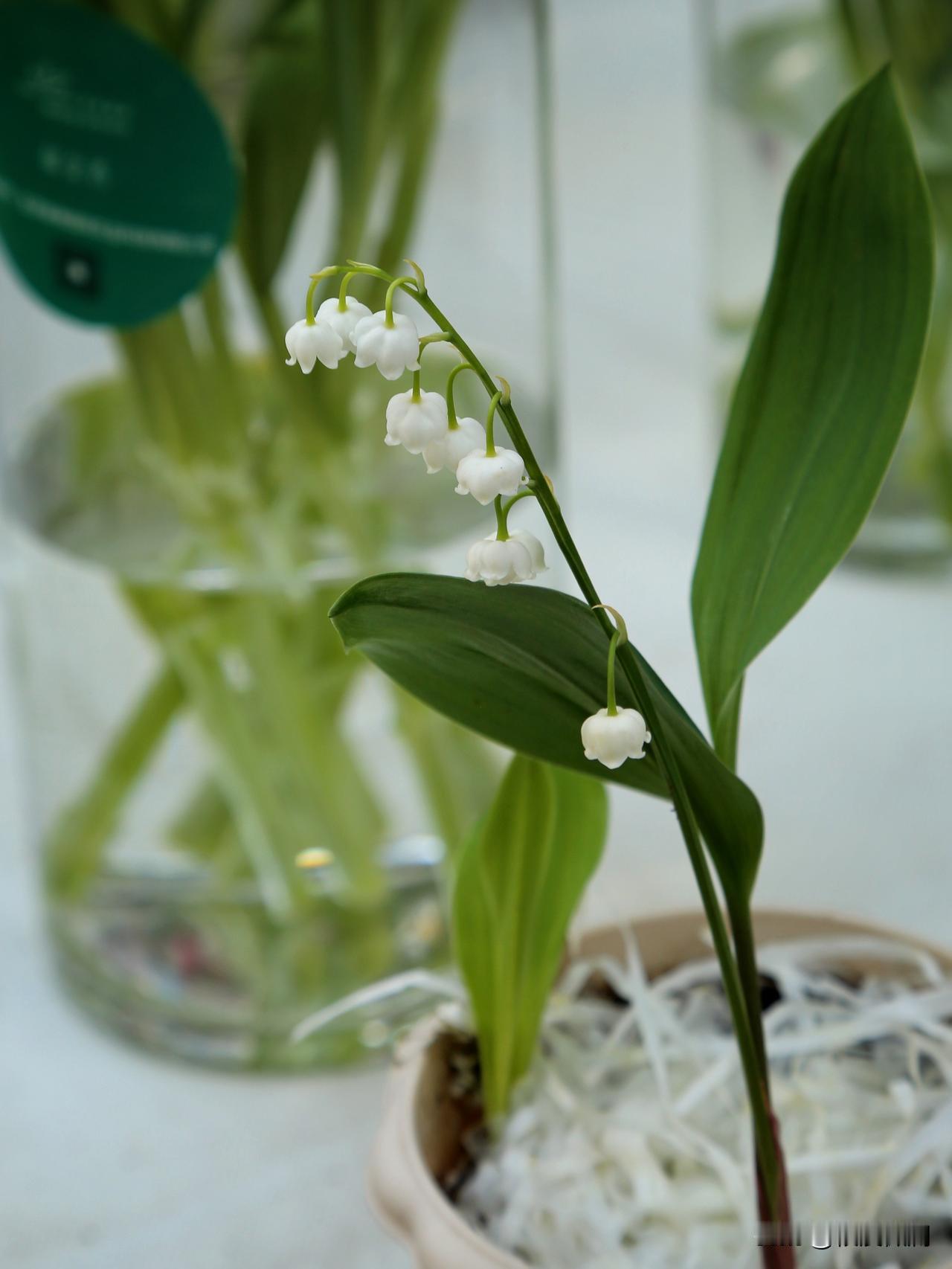 第一次近距离地观赏到了真正的铃兰,这回不是在图片上。铃兰的植株非常小巧,对于它来