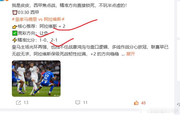昨日西甲两场赛事,完美收官。毕尔巴鄂竞技 1-0 奥萨苏纳,皇马 2-1 阿拉维斯,胜负方向、精准比分双线全中,延续稳定发挥。赛前全网一边倒地看好皇马大胜,那些跟风喊血洗的,脸疼吗?本质上是对足球赛事的认知偏差。太多人只愿意相信豪门光环带来的预期,却不愿沉下心去分析球队的状态周期、战术诉求与战意权重。欧冠出局后的皇马,核心诉求是终结不胜颓势、稳拿三分,而非无意义的刷净胜球;阿拉维斯深陷保级泥潭,客场唯一的目标就是死守缩防,用最小的代价拼取拿分可能。这场比赛从一开始,就注定不会是一场一边倒的屠杀。足球博弈,赢的从来不是跟风的热度,而是对比赛本质的精准洞察。喧嚣过后,结果会证明谁才是真正懂球的人。足球分析赛事预测皇马毕尔巴鄂竞技足球干货五大联赛分析毕尔巴鄂竞技1比0奥萨苏纳皇马2比1阿拉维斯