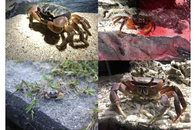 图一:研究中收录的部分真蟹物种,图源:Tsubasa Inoue and Junya Taniguchi, CC BY 4.0图二:真蟹 Tuerkayana hirtipes,图源:Tsubasa Inoue (CC BY 4.0)图三:真蟹 Cardisoma carnifex,图源:Tsubasa Inoue (CC BY 4.0)图四:真蟹 Ocypode sinensis,图源:Junya Taniguchi (CC BY 4.0)