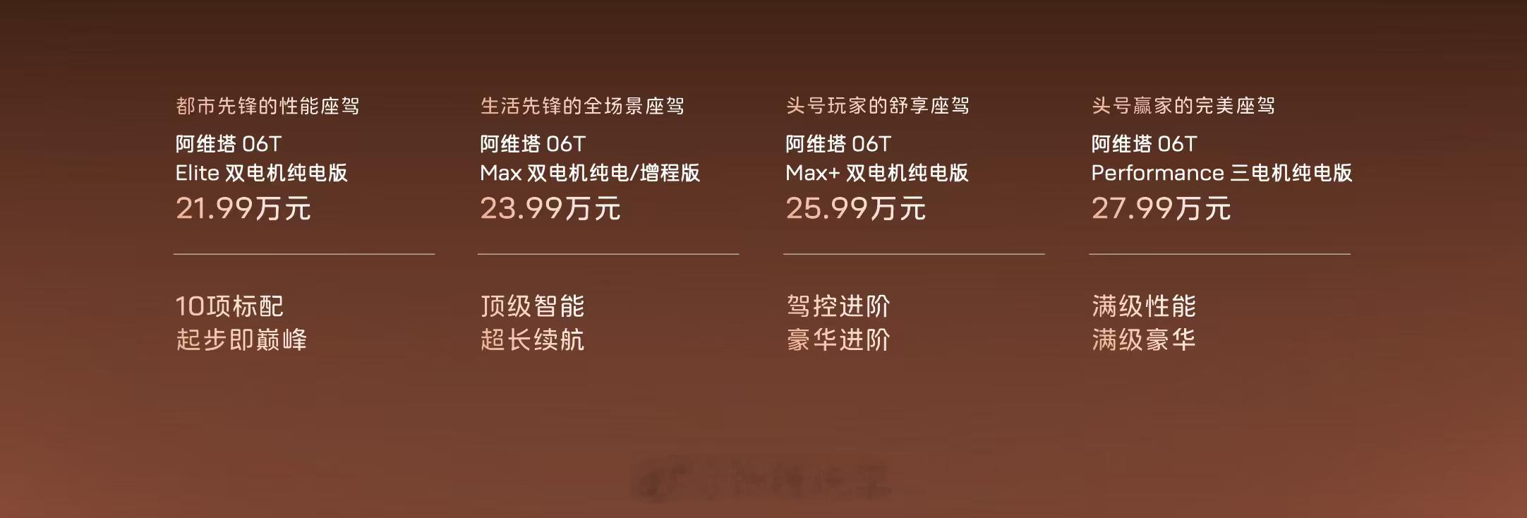 开上阿维塔06T,打开人生旷野十大硬核配置,起步即满配权益后到手价21.59万起!今日24点前下定,可享3000元意向金权益!阿维塔06T上市年轻人的第一台性能车