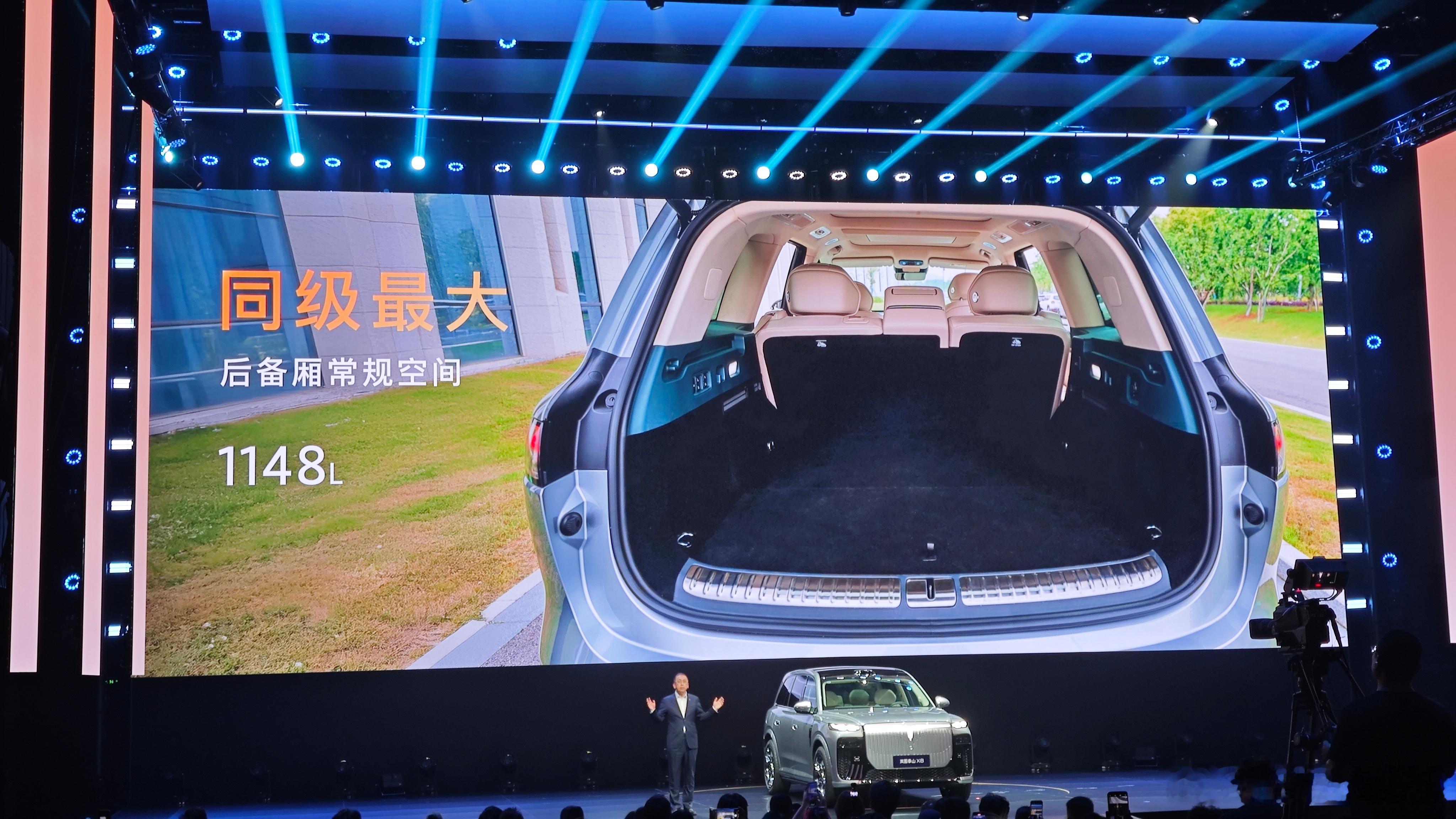 同级最大奢阔空间,1148L超大后备箱,还有专属后备箱晾衣杆。同时,配备896线激光雷达和三腔空悬,家用、舒适、科技通通照顾到。