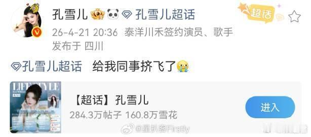 谁给孔雪儿同事挤飞了 这波属实是人气的最好证明,孔雪儿现身引发人群簇拥,同事被挤