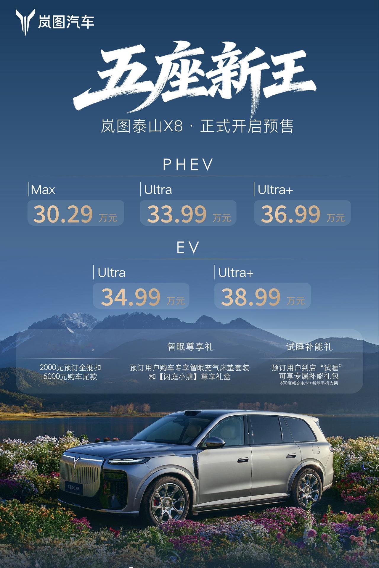 从配置和空间策略上看,岚图这次不卷参数卷场景,而是把车变成一个极致好用的生活空间。岚图泰山X8五座新王