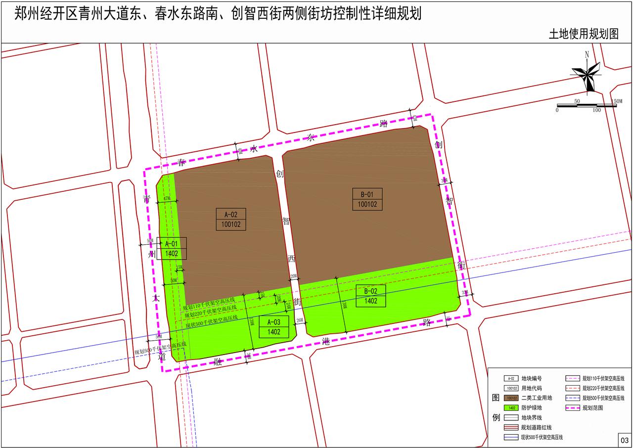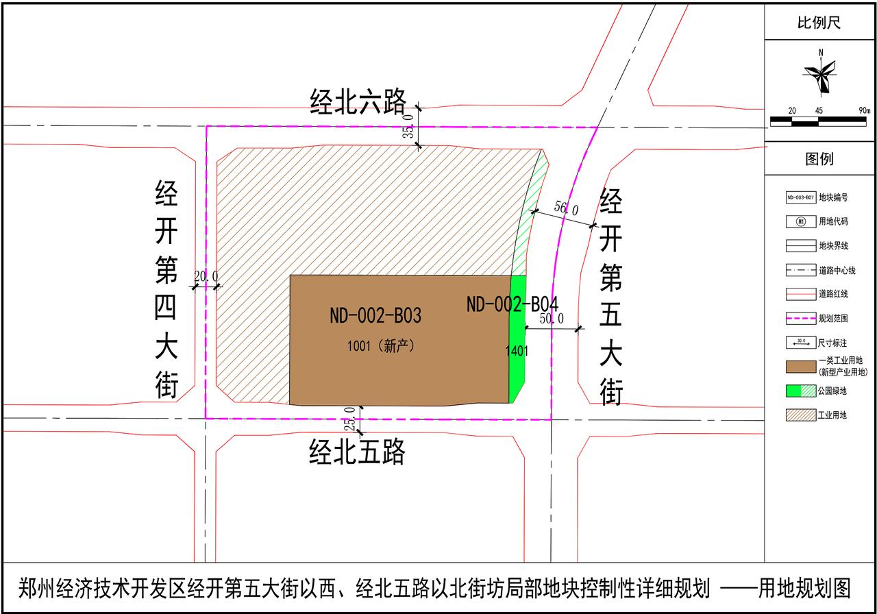 另一块位于拓展区北部,为二类工业用地(100102)、防护绿地(1402),规划范围位于郑州市经济技术开发区扩展片区北部,具体为青州大道、融港路、创智街、春水东路所围合的街坊,由青州大道、融港路、创智街、春水东路所围合围合区域。