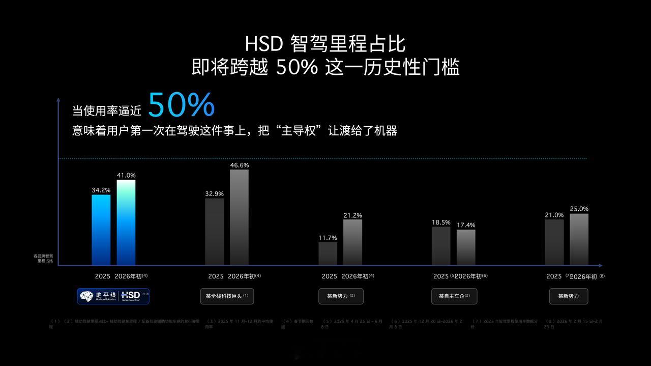 2025年11月,国内首个一段式端到端HSD量产落地,智驾里程占比即将跨越50%的历史性门槛。