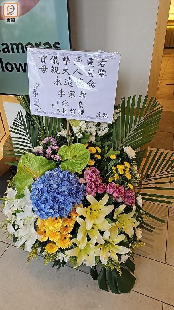 今日下午2時,大批傳媒抵達靈堂採訪,靈堂門外寫明「私人聚會,非請勿進」,門口放了寫上八十有餘字樣,靈堂前放滿兒孫和前夫的心形花牌,大仔李泳漢與太太嚴佩鈺的巨型心形花牌放正中間並寫上:「尊前慈母在 浪子不覺寒」,細仔李泳豪的花牌則放在左邊,但未見他的太太Agnes名字,而前夫李家鼎的花牌則放在右方。現場所見,李泳豪與太太Agnes(林妤謙)合署的花牌,疑遭人移至後樓梯位置,令兄弟決裂傳聞正式浮面。