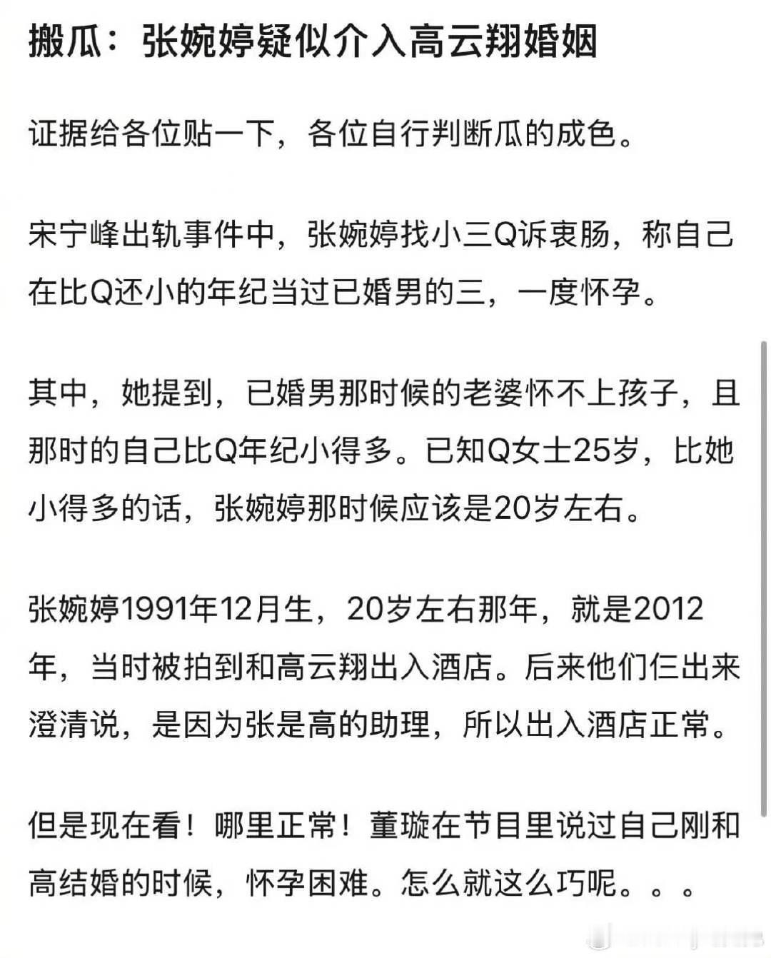 我的天啊,现在都在讨论之前高云翔跟张婉婷的事情啊,起因是张婉婷自己跟Q女士说自己