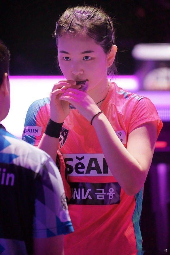 金娜英曾被韩国媒体寄予厚望,但她现在明显处于一个瓶颈期,反观队友申裕斌,已经完成了技术上的一个飞跃:小申是力量型打法,她的正手质量日益见长,打削球更是有自己的一套心得,而金娜英的身板,则显得相对“瘦弱”,导致她的正手力量相对有限,鲜有连续爆冲得分的佳作,典型的案例是2026年3月WTT重庆冠军赛中,当陈熠正连续针对金娜英的正手和中路时,金娜英便感到难以招架,频频失分,所以,金娜英要取得突破,增肌是必不可少的环节,而提升正手威力,乃是当务之急。