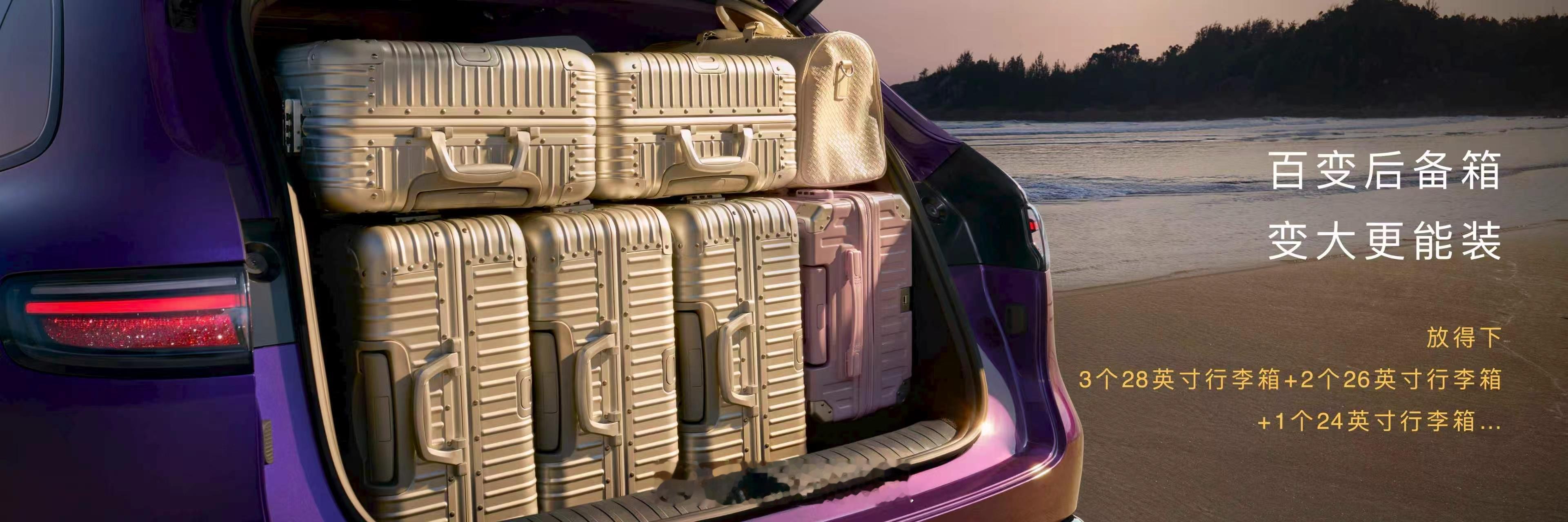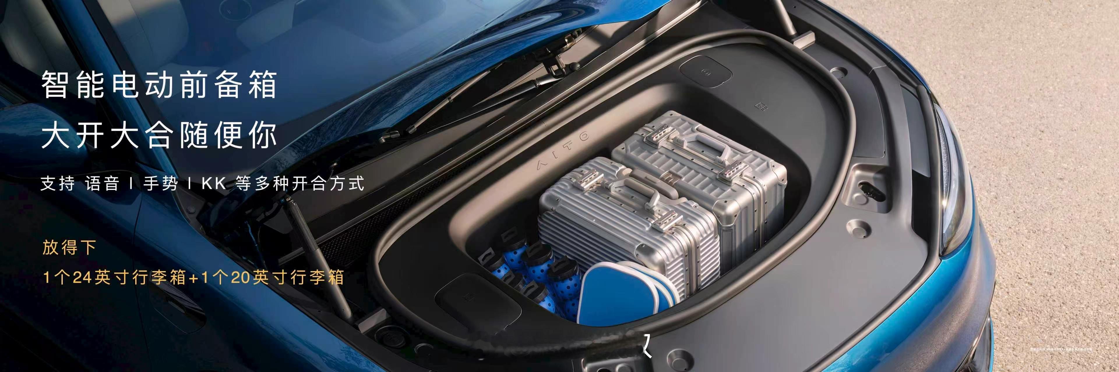 纯电版配备202L智能电动前备箱,支持语音、手势、KK多模态开合,轻松实现“大开大合”;可同时容纳24+20英寸行李箱,实用性拉满。