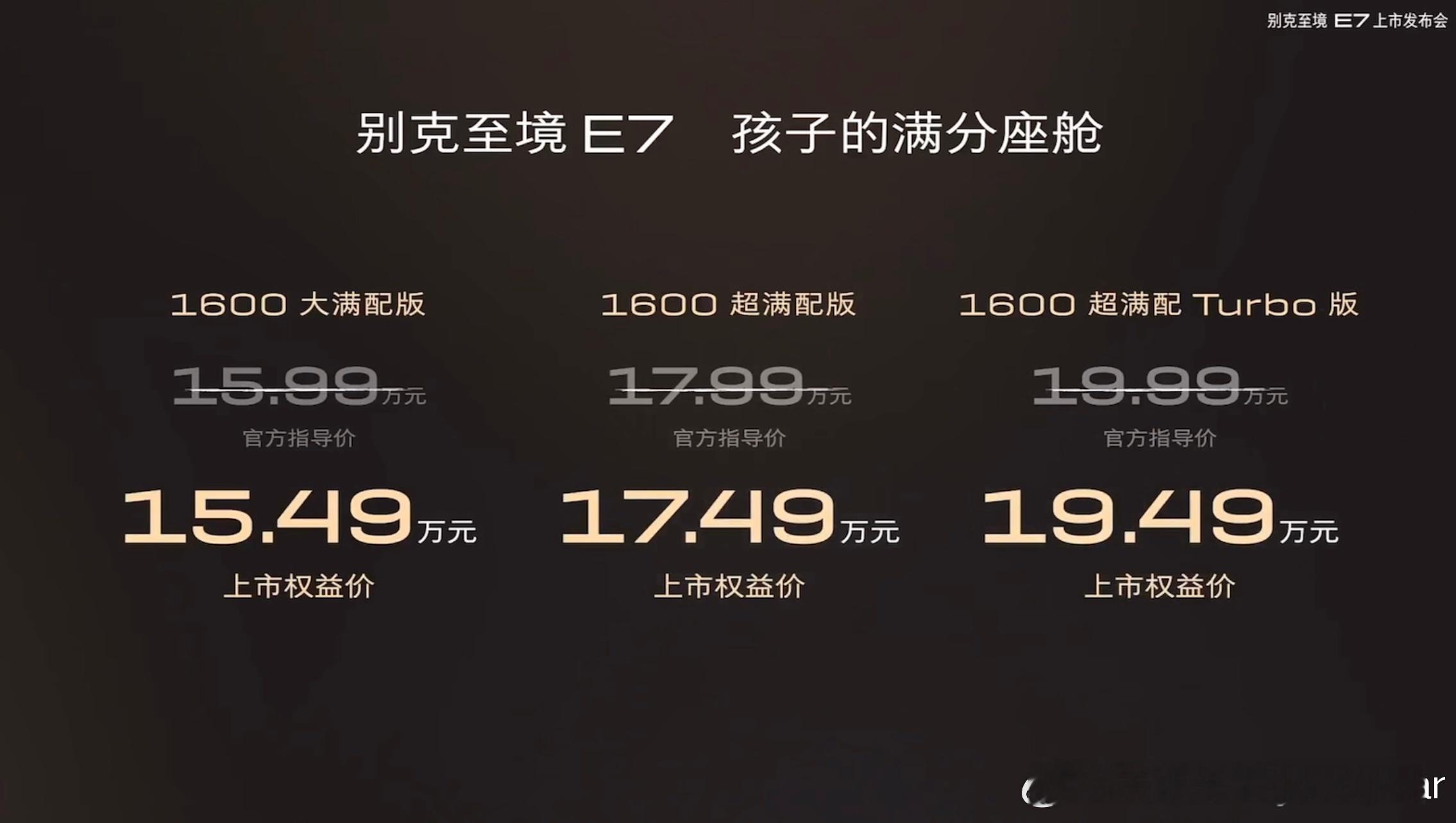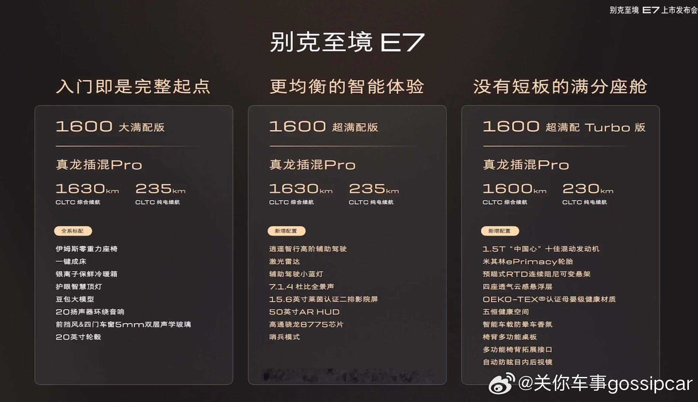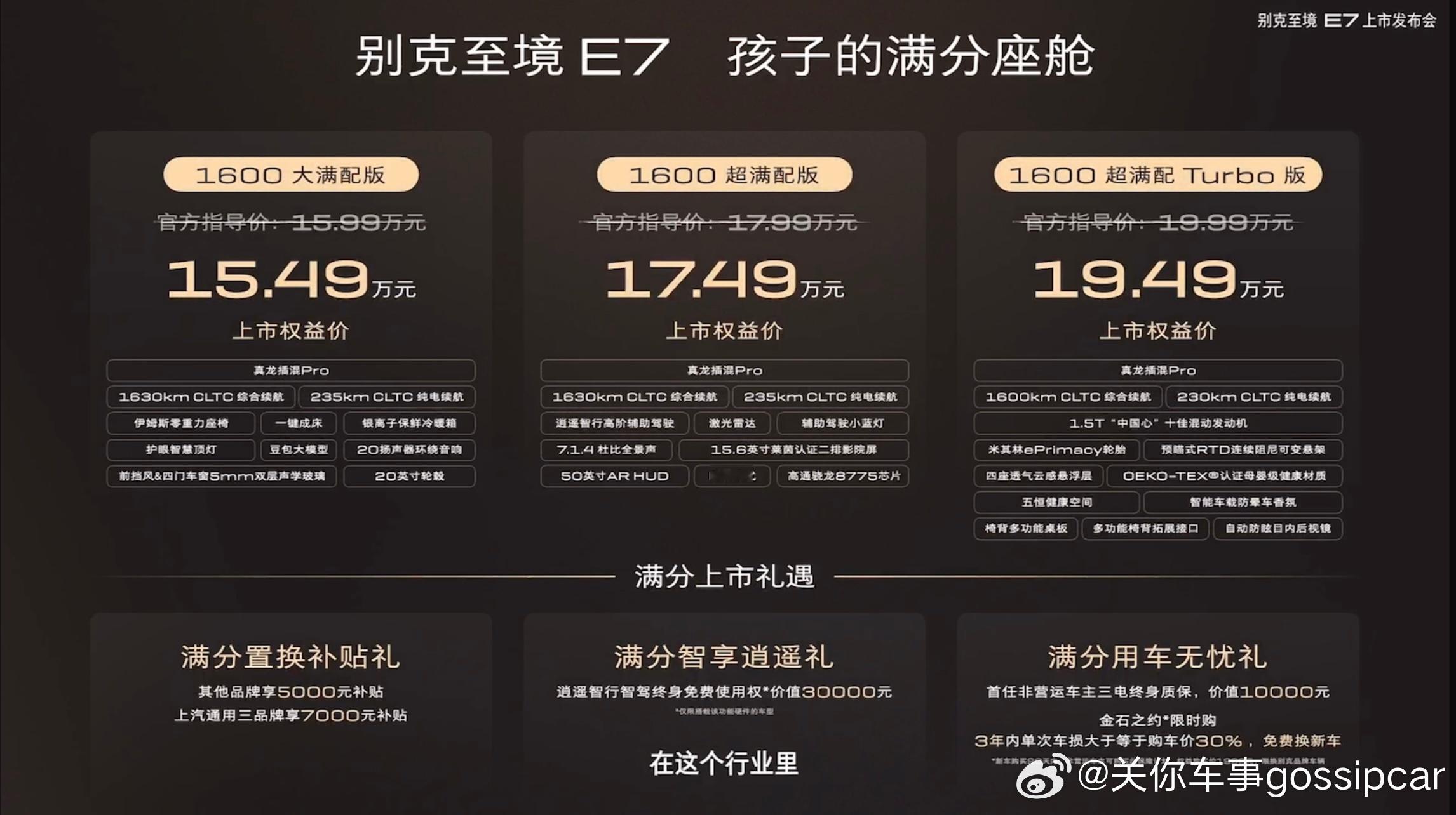 一直惦记着的车今天上市了。别克至境E7置换权益价15.49万元起,一共三款车。说实话,配置是真的高,而且续航超强。至于三款车怎么选,我特意做了视频解析我觉得最多人买会是中配,因为真的“高大全”。新车大v聊车