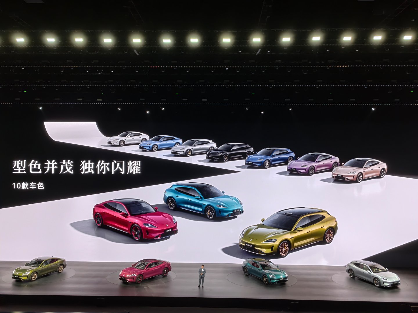 颜值也还是很顶,车长超5米,气场拉满。10种车色、8款轮毂、粉色卡钳随便搭。全车漆面用了豪车同款5C2B工艺,质感拉满了!