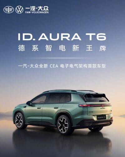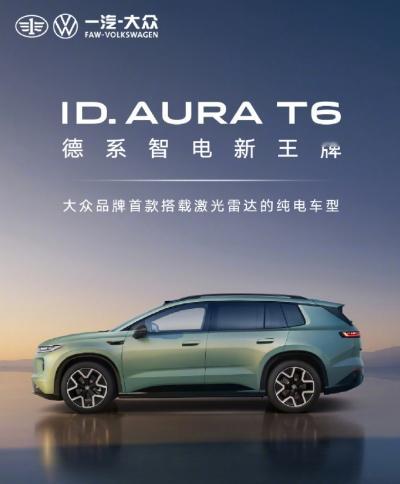 【一汽大众 ID.AURA 序列首款车型 T6 正式亮相,定位中型纯电 SUV】一汽-大众 ID.AURA T6 正式亮相,定位中型纯电 SUV,基于全新 CEA 架构打造,搭载大众与地平线合资公司酷睿程打造的高阶智驾系统,官方称其更懂中国路况。