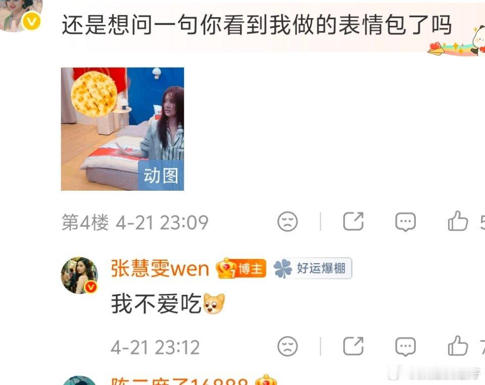 张慧雯不爱吃饼原来张慧雯都出道十二年了!时间过得赶快啊!最近看浪姐才发现她性格好有趣,很可爱。