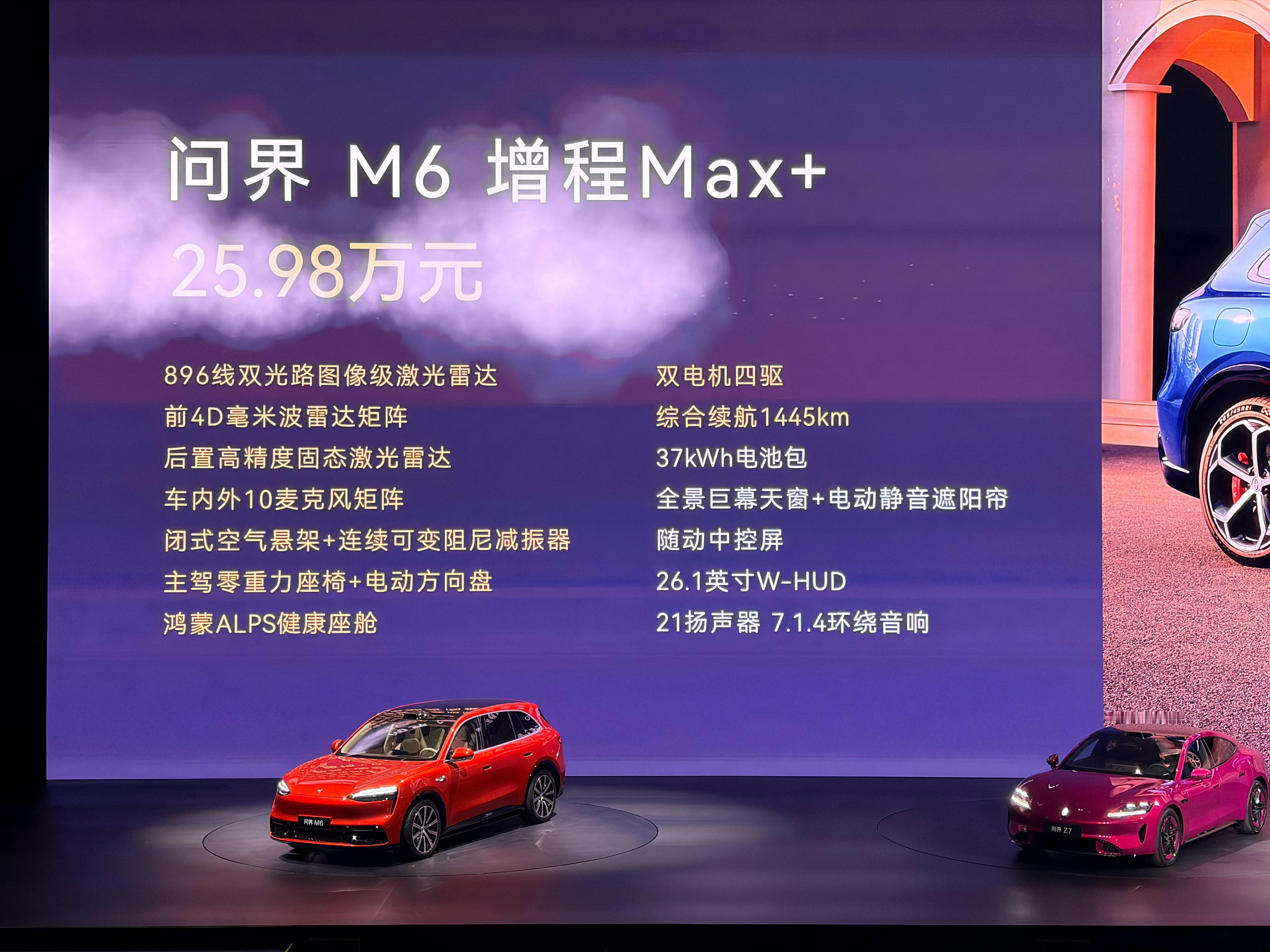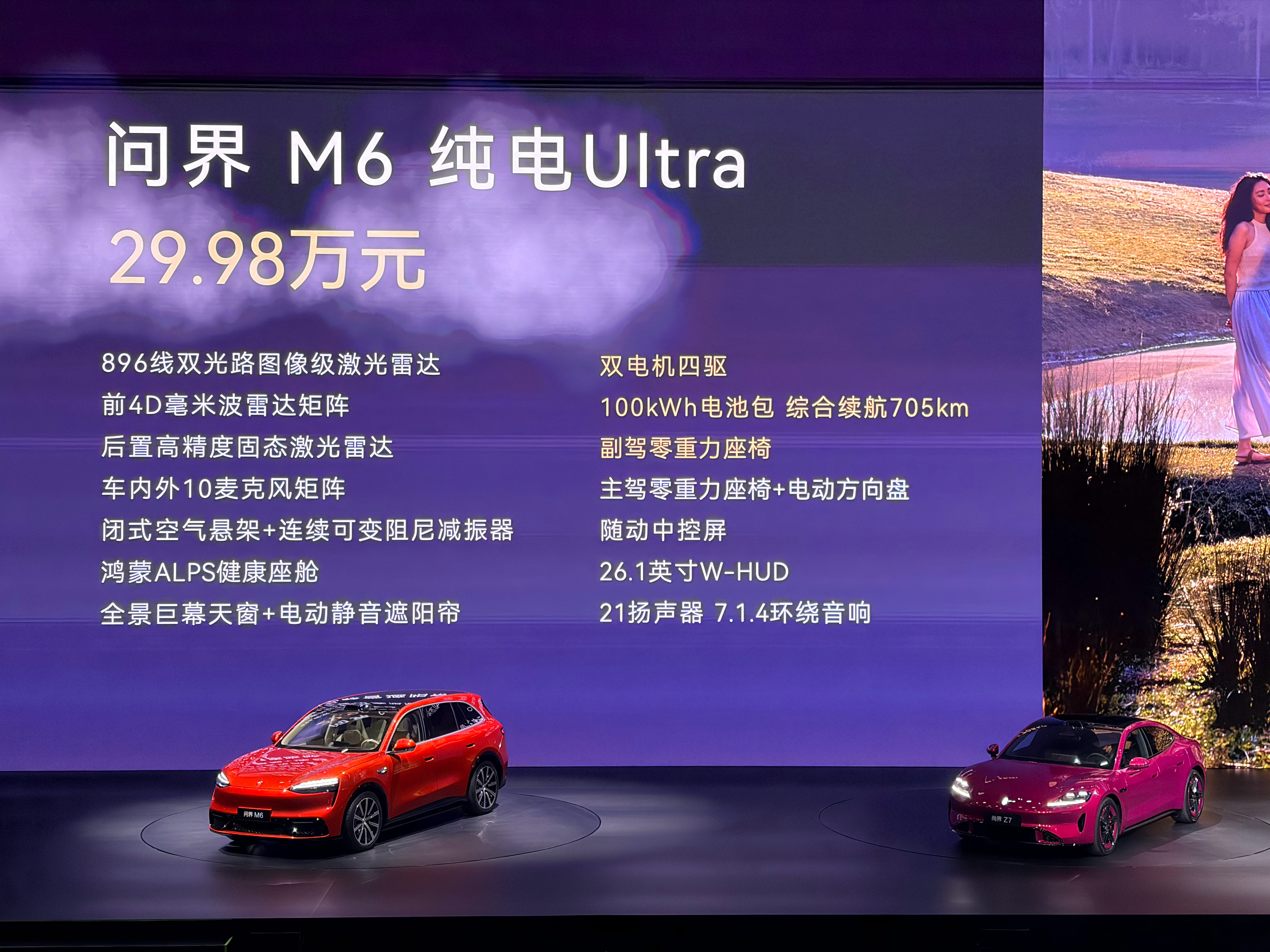 问界M6起售价25.98万元 问界M6增程Max+版25.98万元,问界M6增程Ultra版27.98万元,问界M6纯电Max+长续航版27.98万元,问界M6纯电Ultra版29.98万元。发布立即提车,最快五一开新车!鸿蒙智行春季新品发布会