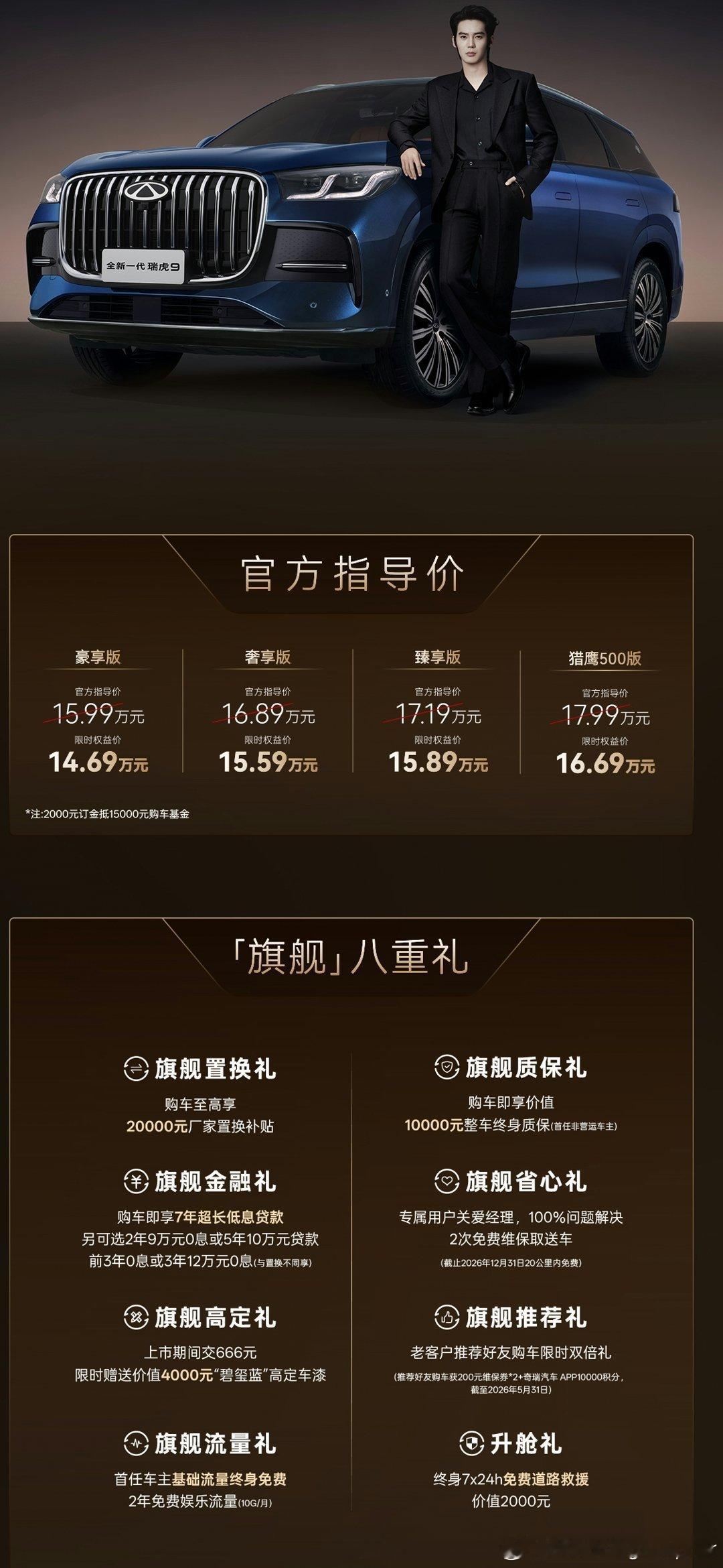 临近2026北京车展全新一代瑞虎9上市了,标配CDC悬架,30寸中控屏,还有2.0T发动机…