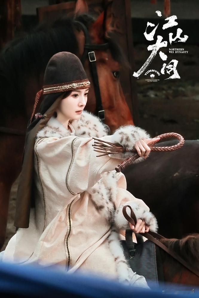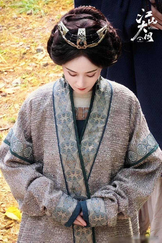 你去看她新剧《江山大同》那几张图,一身粗麻布,脸上细纹和冻伤的红晕都清清楚楚,头发拿根布条随便一绑。这质感,活脱脱就是从北魏壁画里走下来的女奴。