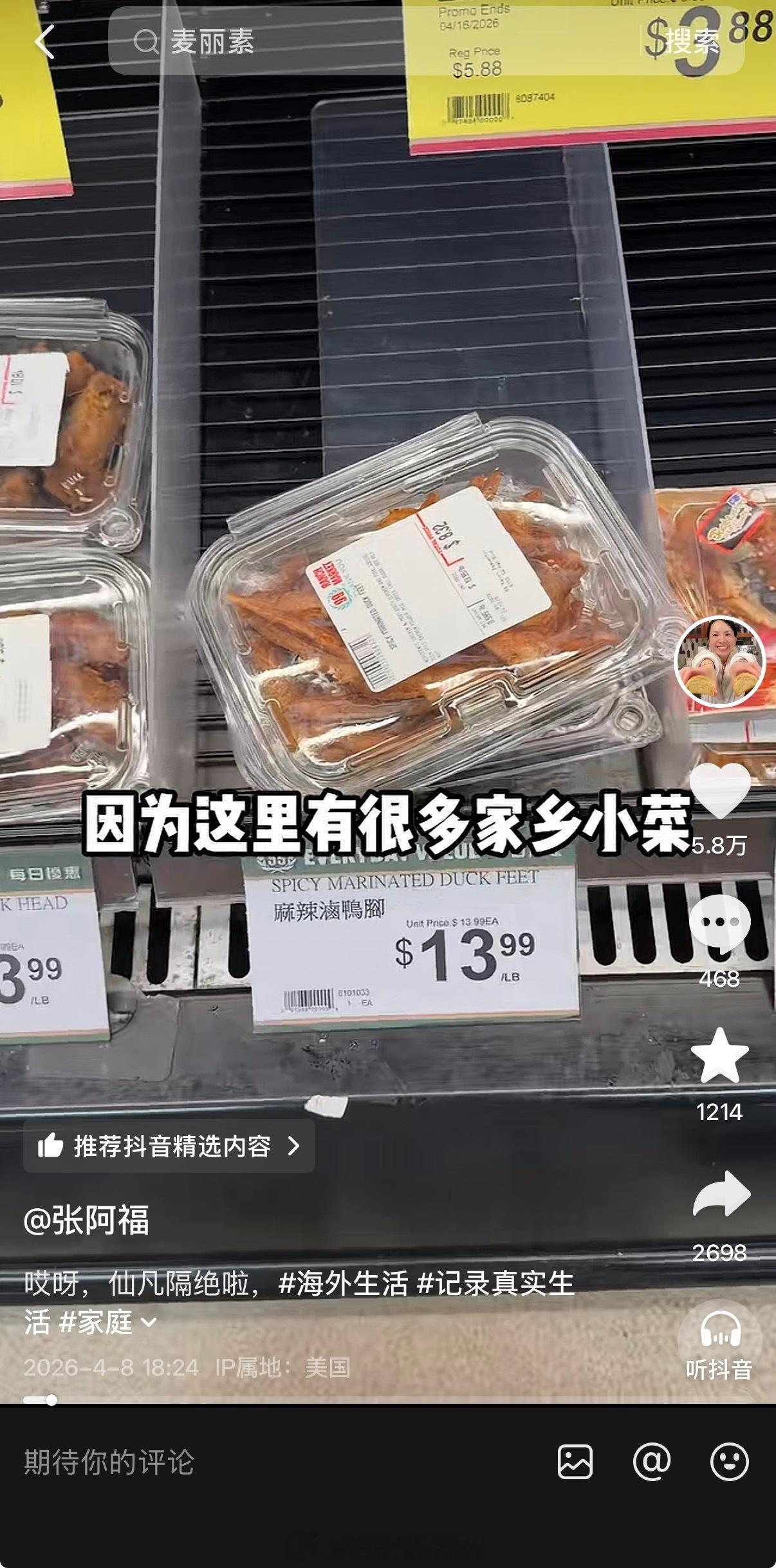这这这,🇺🇸中超一个释迦的价格,简直让人惊呆了,买两个半的价格,山姆可以买一箱 一小盒鸭掌100块,更让人惊呆赚美刀的不叫事吧,但是赚人民币,看这价格,真是亚历山大