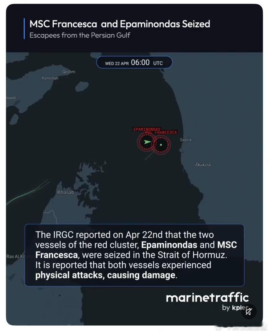 伊朗扣押两艘试图离开霍尔木兹海峡的商船隶属MSC瑞士航运/物流公司,被革命卫队武