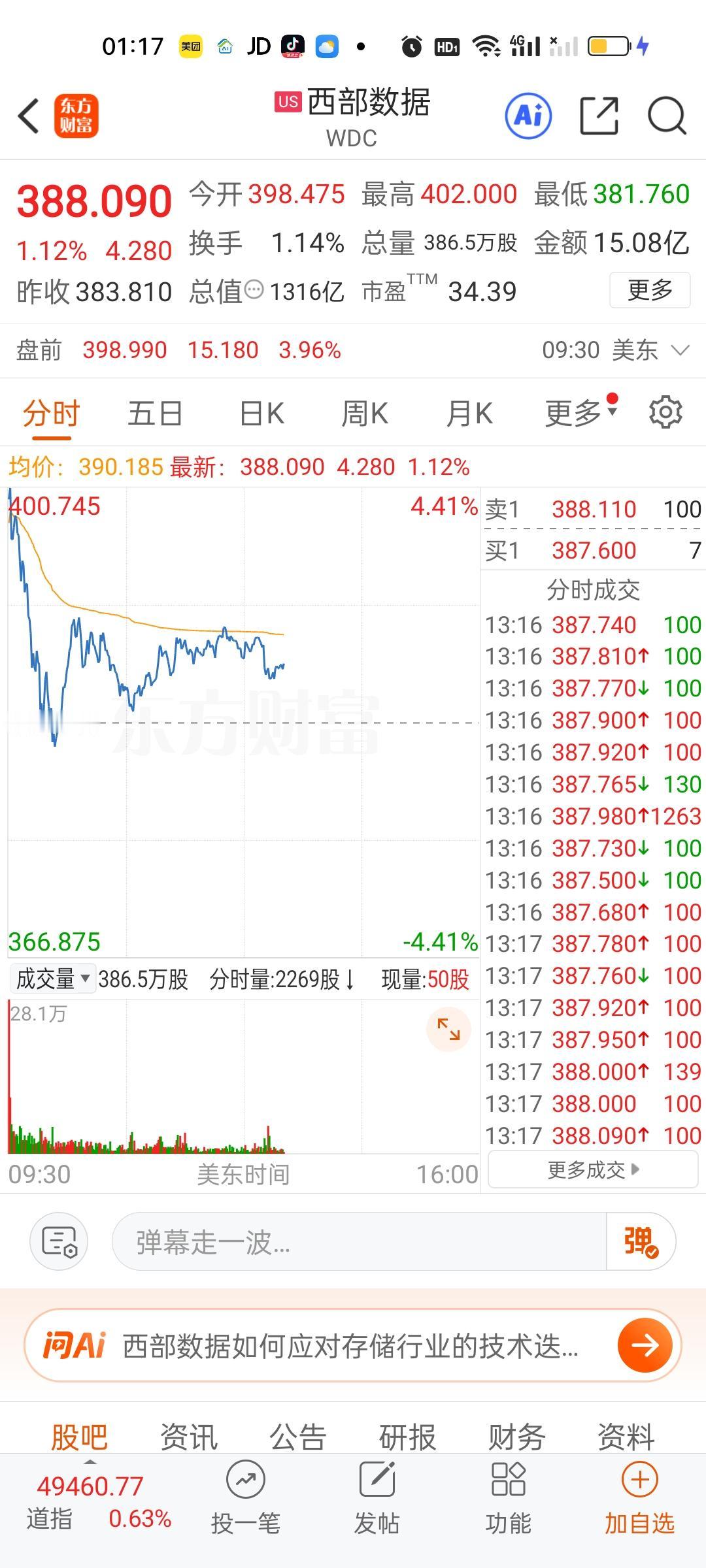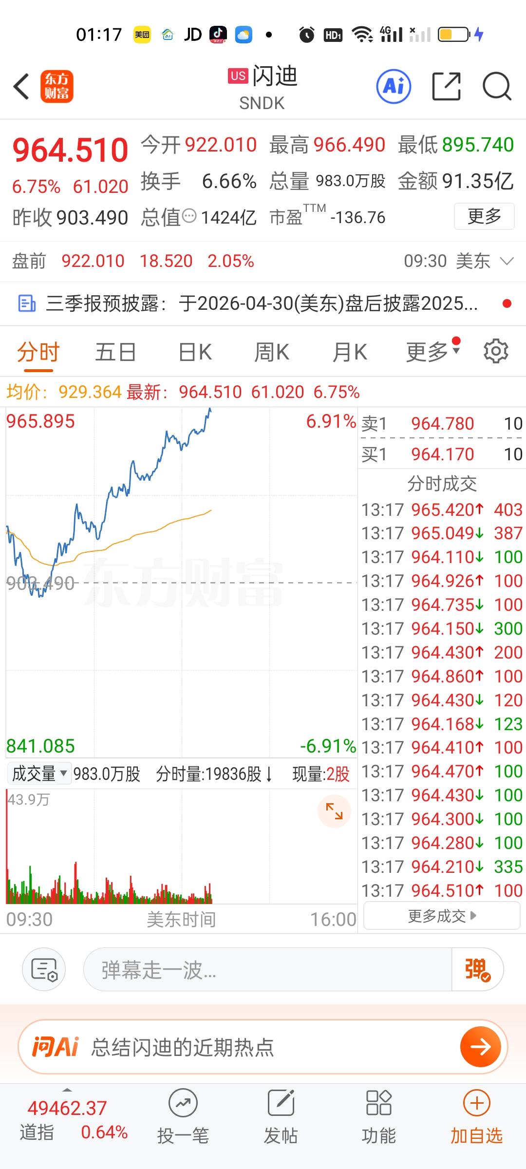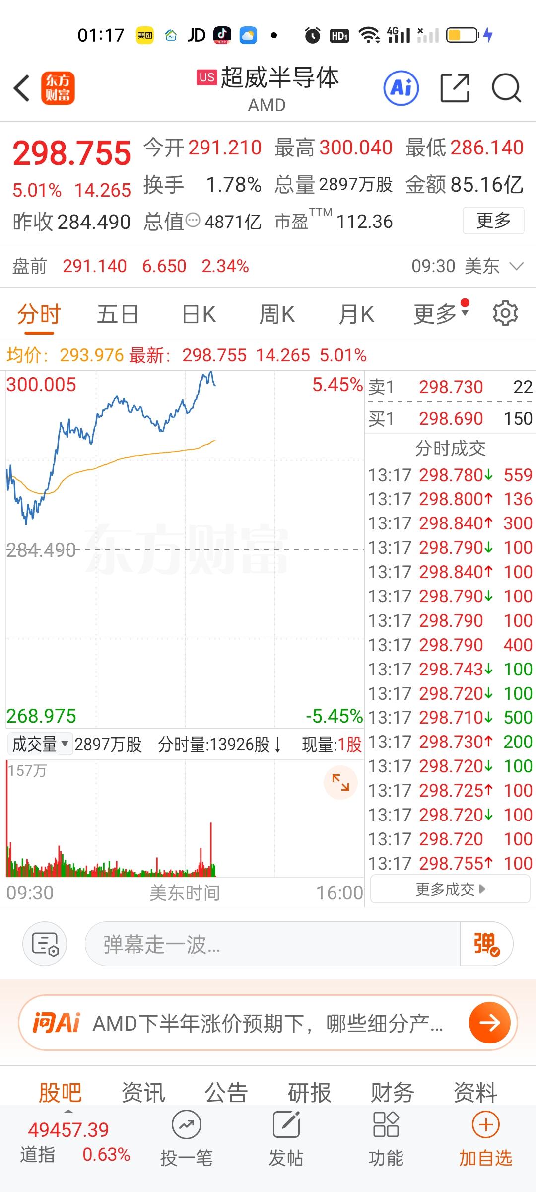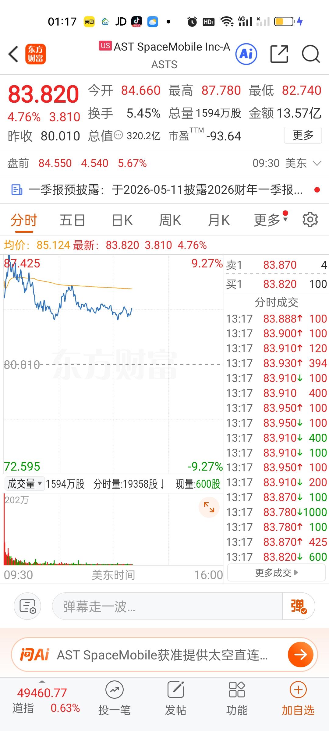 美股今天半导体和存储芯片走的相当不错,但商业航天今天是高开低走的。特斯拉,英伟达,英特尔走的很一般。苹果,微软目前还是上涨的状态。