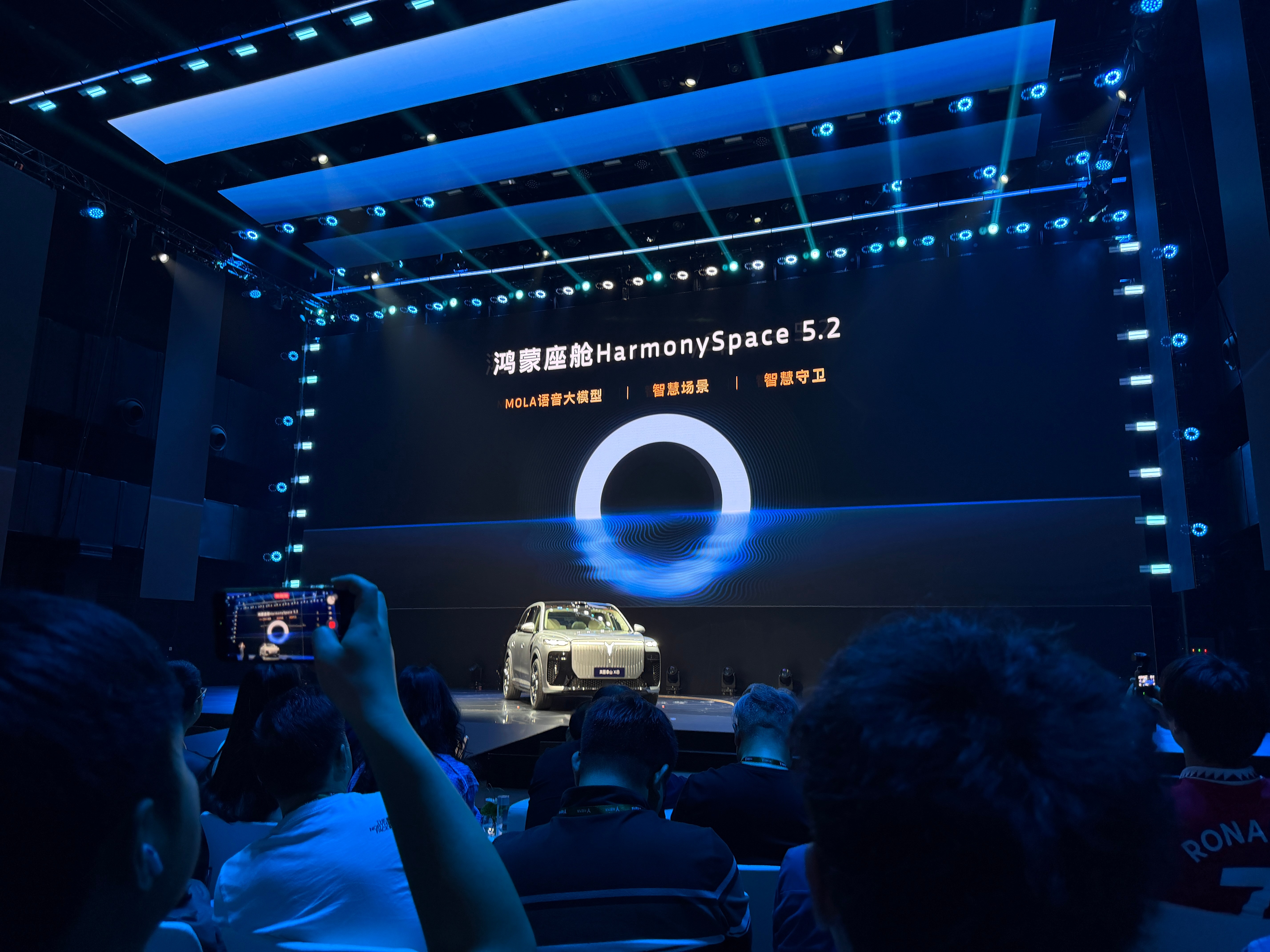 5.【华为新一代智慧座舱】:首发搭载华为新一代鸿蒙座舱,前排采用双15.6英寸华为车载智慧双联屏,并配备21.4英寸3K后排吸顶多媒体娱乐屏,实现多屏智能互联。