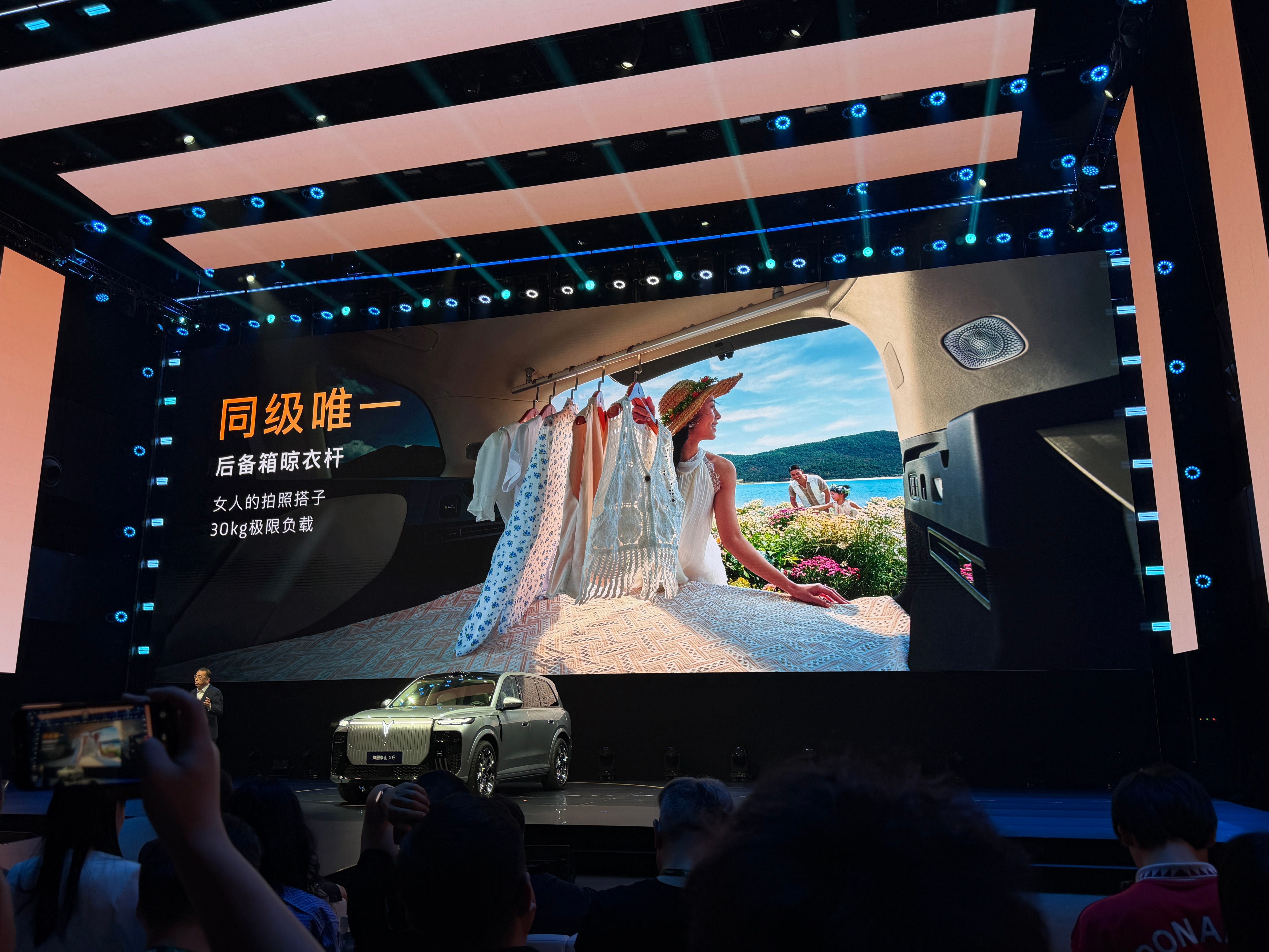 10.【超大的行李厢空间】:岚图泰山X8配备了百变后备厢,标准容积为1148L,可以轻松容纳11个20寸行李箱,二排座椅放倒后空间可拓展至2361L。此外行李厢还能秒变为同级唯一“车载衣帽间”。