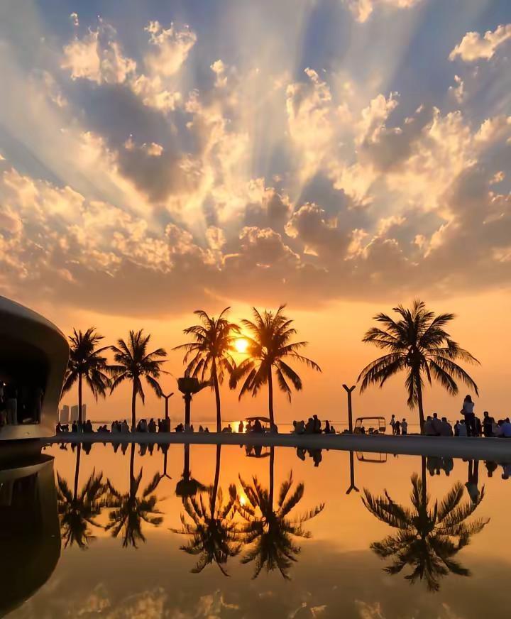 39℃海口热到融化,还好有落日晚霞。海口高温预警 海南天气太热了