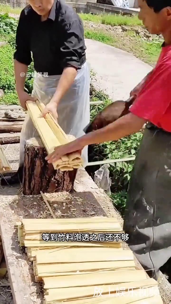 ·竹子被砍下来后,第一件事不是用,而是拆。工人会用刀把外皮一层层剥掉,再把整根竹子砸成小块,丢进水里浸泡。因为只有让纤维变软,这根竹子才有被改变的可能。