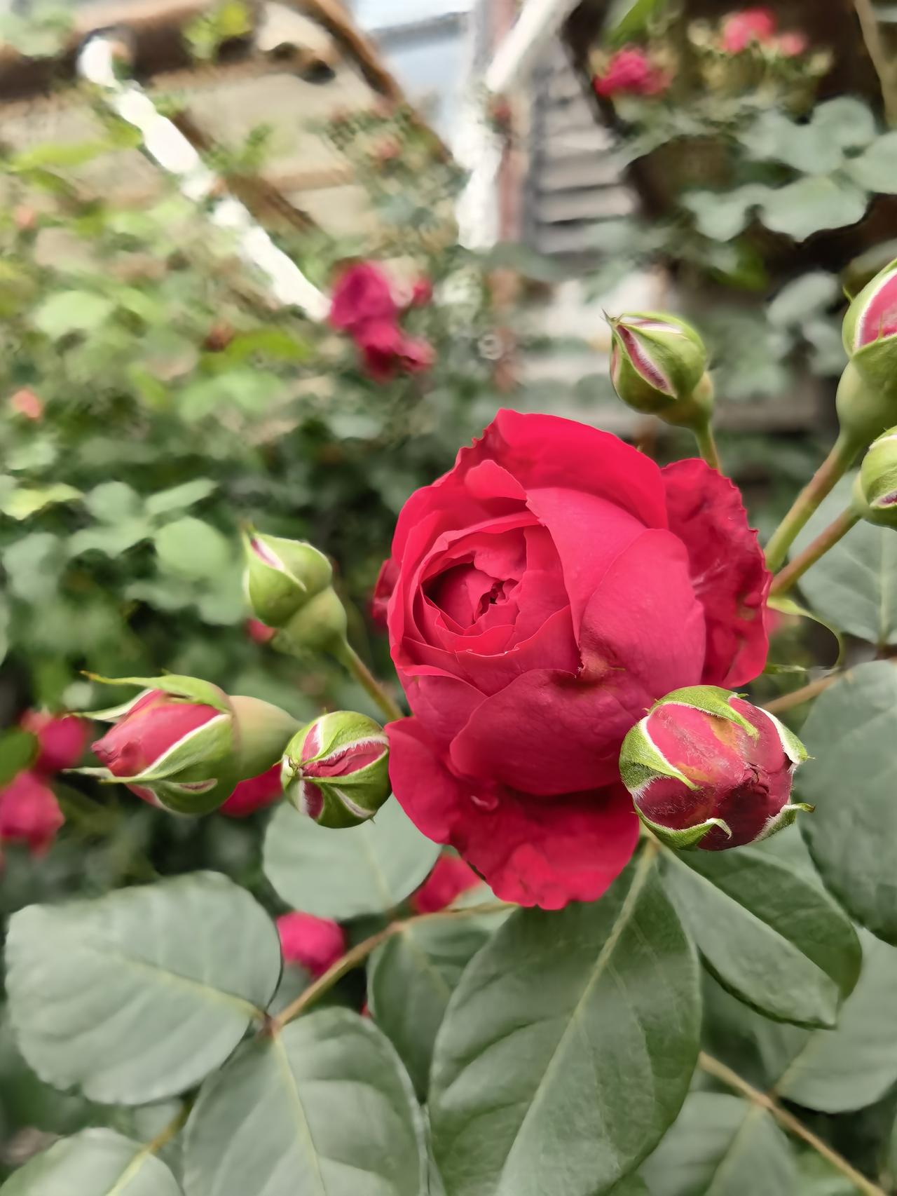 月季不愧是花中皇后,即便在冬日都能娇艳绽放,何况这明媚春日。它不像牡丹雍容华贵,也不像桂花藏于绿叶,优雅秀丽的它,长长的枝干努力向上伸展,粉红花朵迎风摇曳,宛如翩翩起舞的仙女。苏轼说“惟有此花开不厌,一年长占四季春”,用在这儿再合适不过。漫步花园,仿佛邂逅了一场浪漫至极的春日梦境。